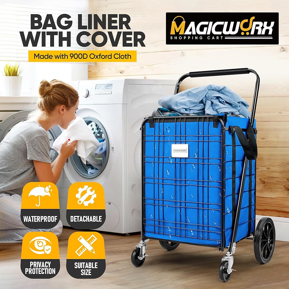 【DURABLE WATERPROOF LINER BAG】The shopping carts for groceries comes with a robust 900D Oxford liner, complete with handles. This waterproof liner not only prevents small items from falling out but also safeguards your privacy. It's built to endure frequent and prolonged use.