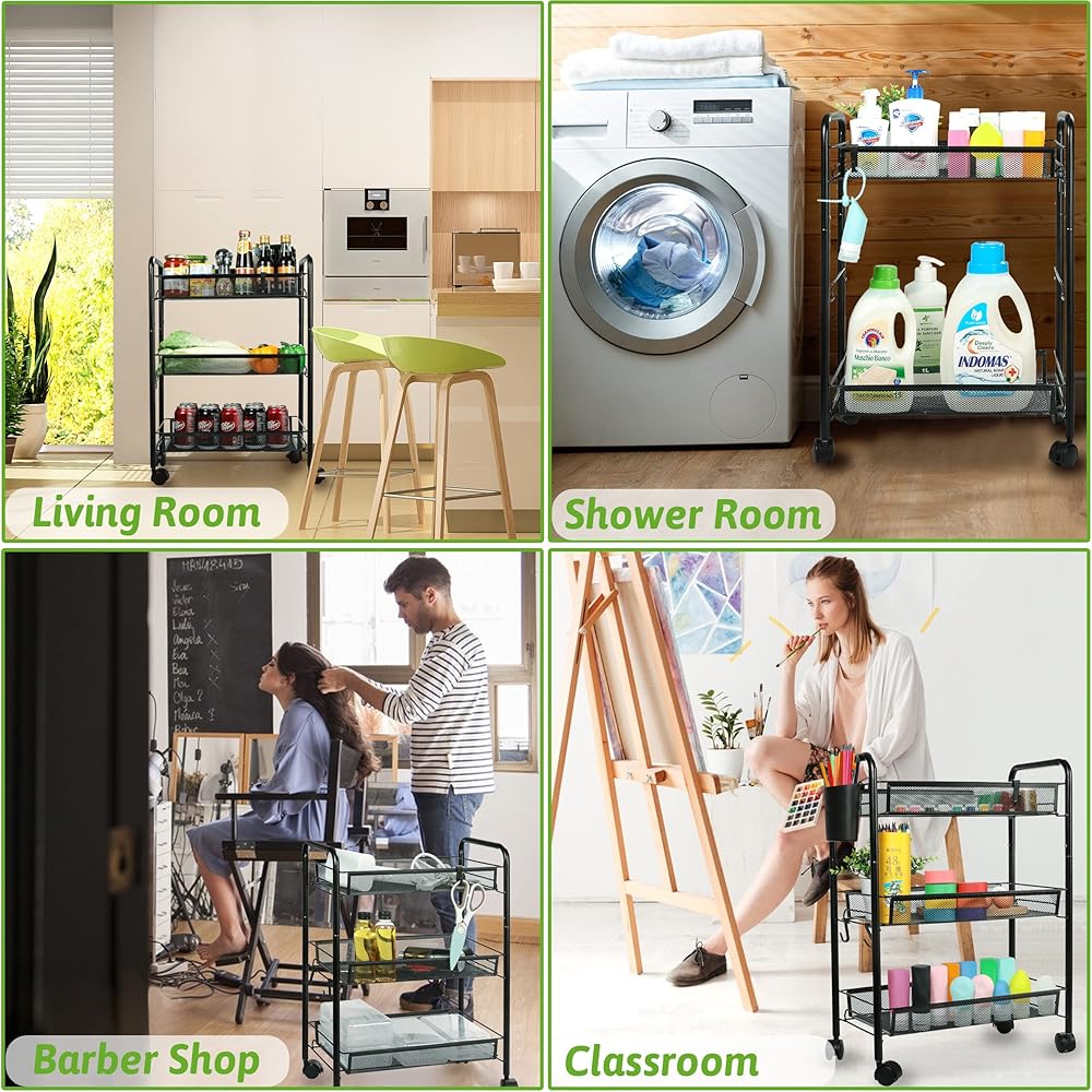 【Flexible 3-Tier Organizer Cart】The 3-Tier rolling storage utility cart can be used in closet, kitchen, painting, bathroom, garage, laundry, office, trunk. Available in multiple places to keep your life more organized.