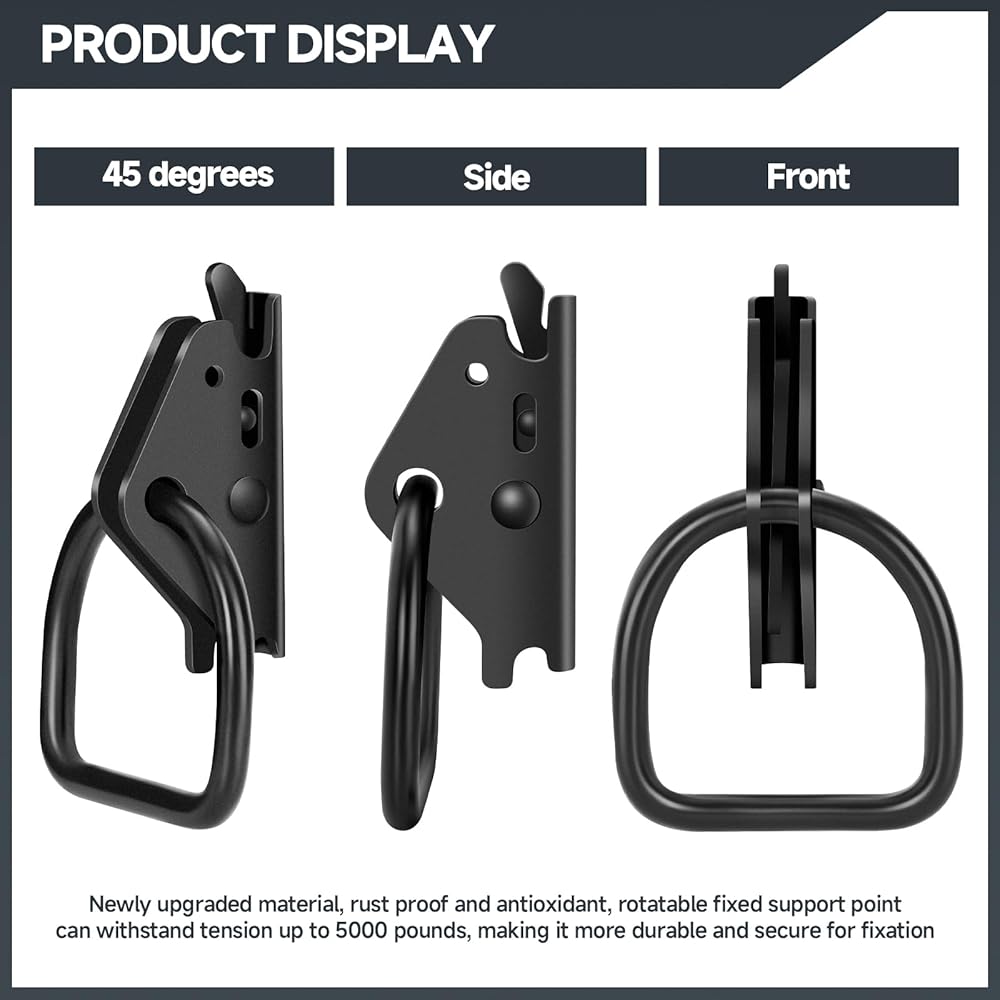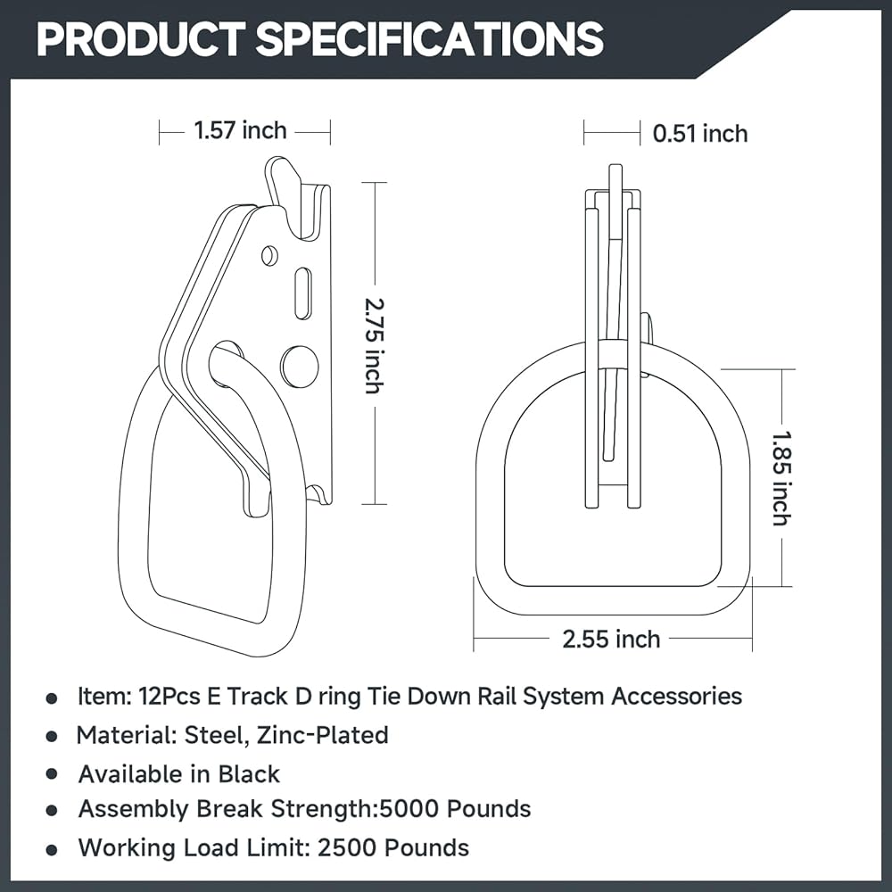 ✔️【Durable & Safe】:The construction of the E Track O Ring is high density steel with a zinc coated surface which makes them durable, strong and long lasting. Each E Trcak O Ring has a break strength of 4,500 pounds and a safe working load limit of 1,500 pounds.
