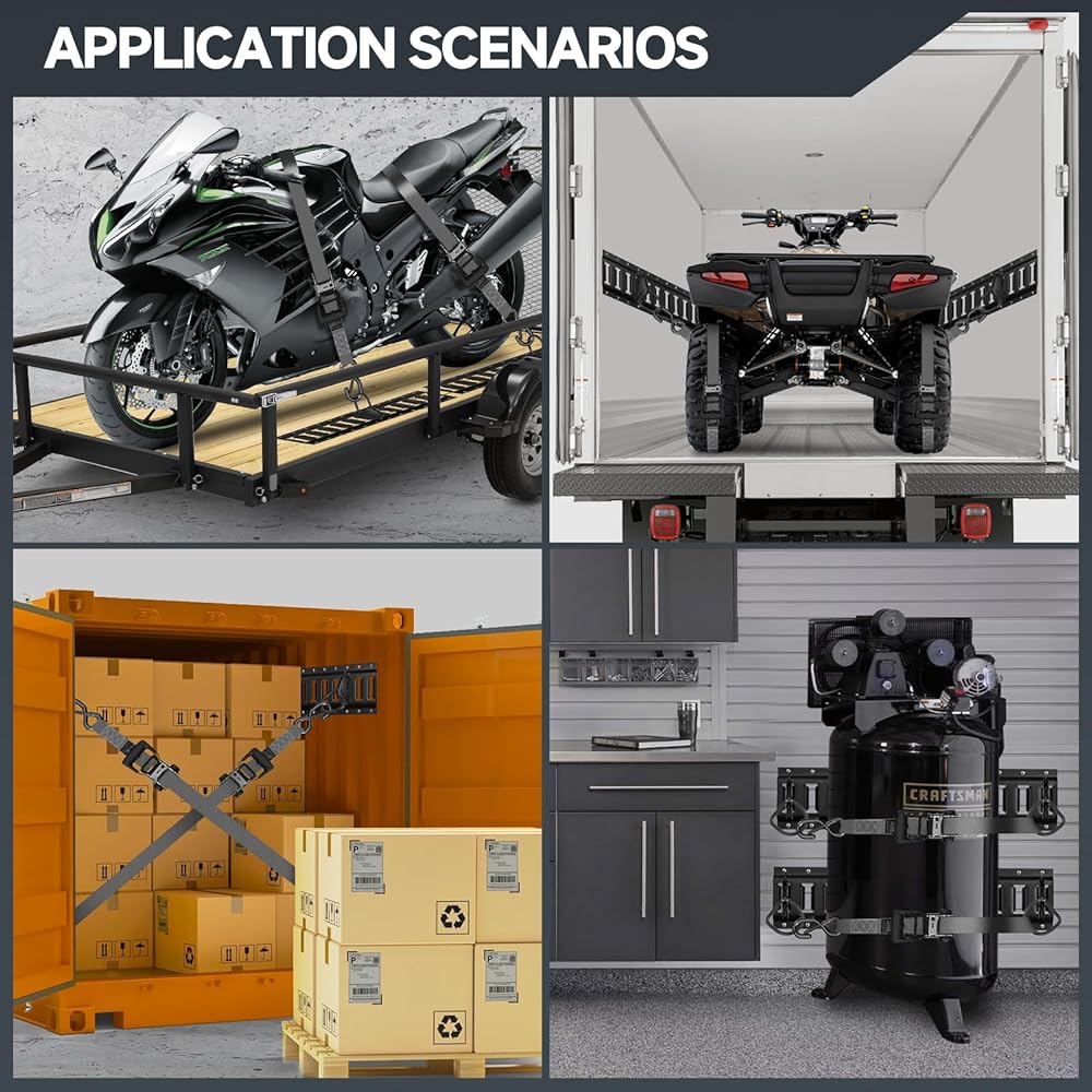 ✔️【VERSATILE】:Secure all logistics ratchets and cam buckles, ropes, bungee ropes, chains with e track spring fittings for cargo management of freight cars, trailers, trucks, flat cars, etc. equipped for handling furniture, ATV, tools, boxes, pallets, ladders, farm equipment, landscape trees, bicycles
