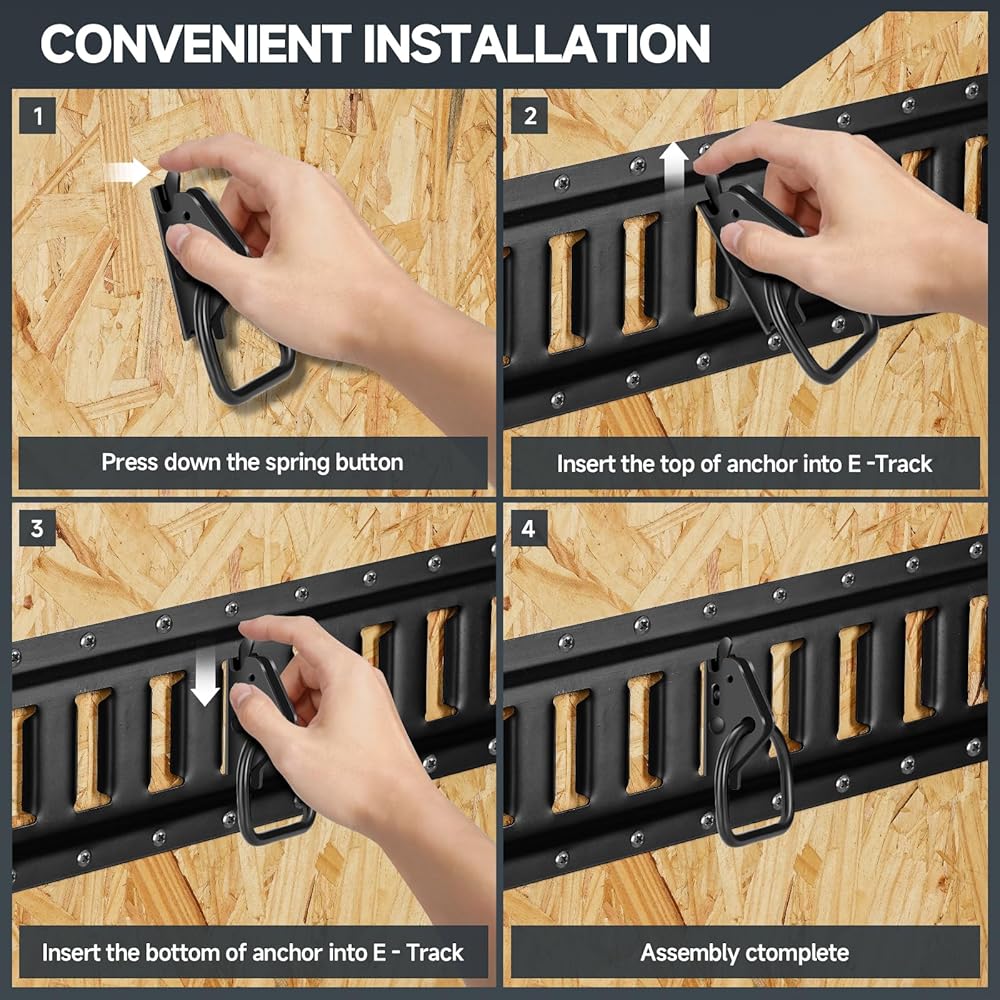 ✔️【Easy to Use】:The E Track O Ring which can move your belongings from the floor and organize them well. flatbed equipped with E-track rail(not included) when you moving , ladders, farm equipment,ATV,furniture,bungee cords, chains, etc.
