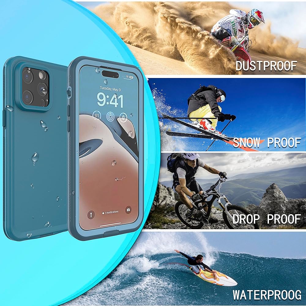 Waterproof Case,Retail Packaging,IP68 Full Sealed Snowproof Dustproof Shockproof Heavy Duty Protection Cover with Screen Protector for iPhone 14 Pro 6.1 Inch Dark Blue