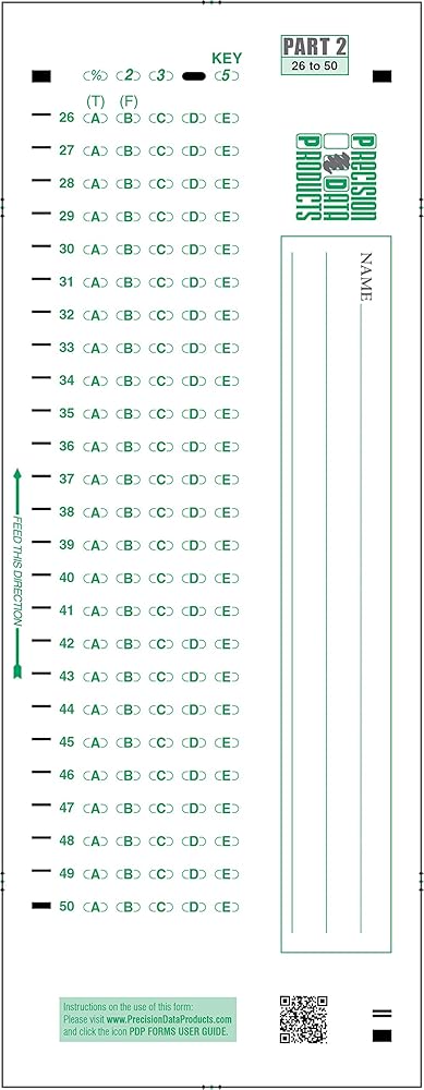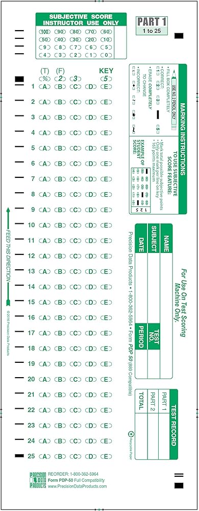 نماذج الاختبار المتوافقة مع PDP 50، 889 E 50 QUES X 5 Choice APLHA (50/pkg)