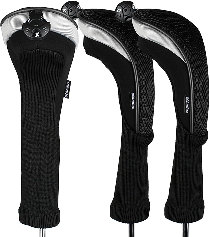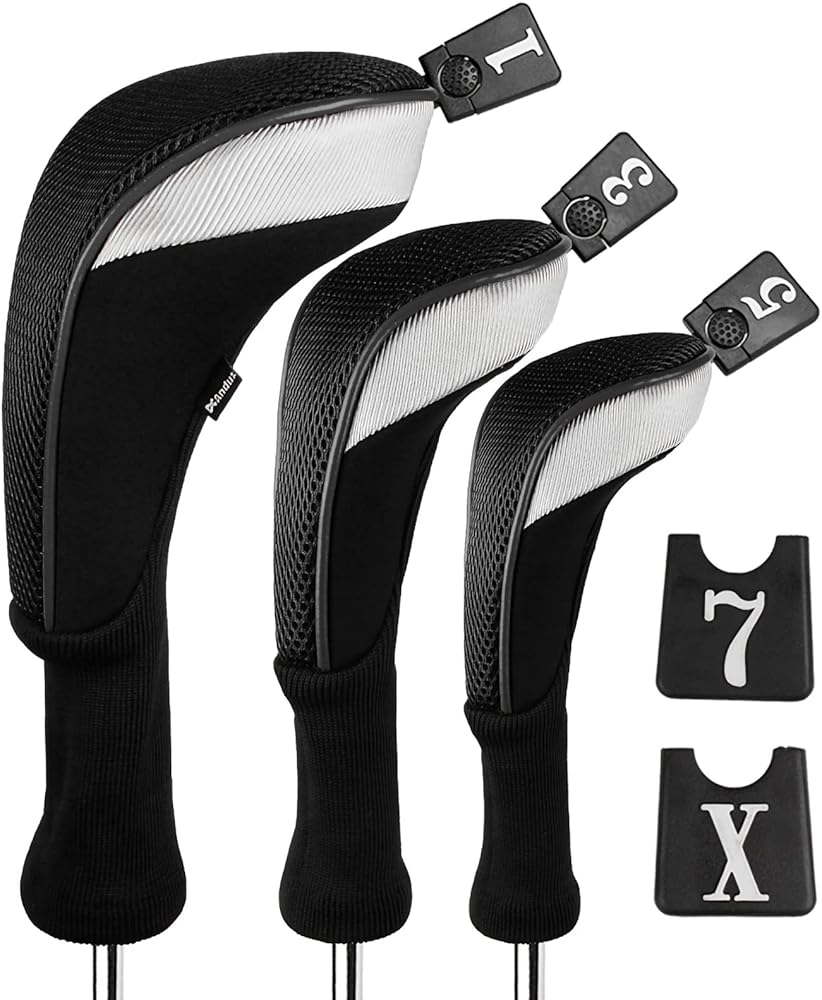 3 wood head covers with interchangeable No. tag 1, 3, 5, 7, X.