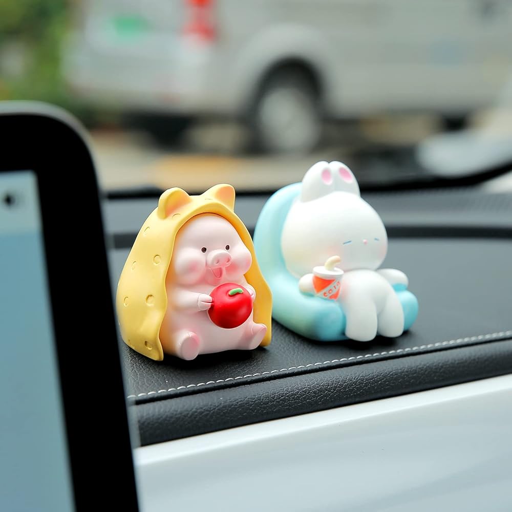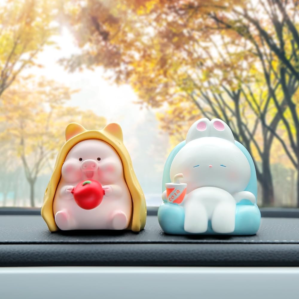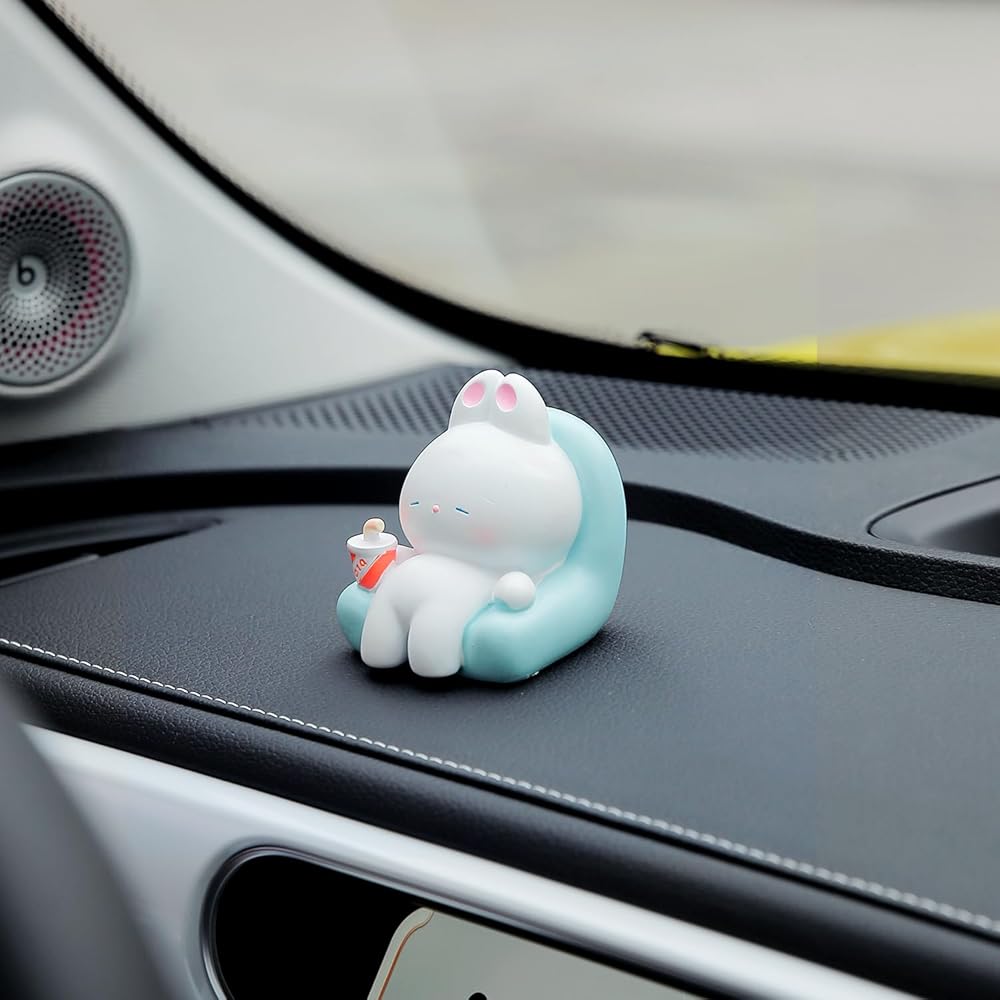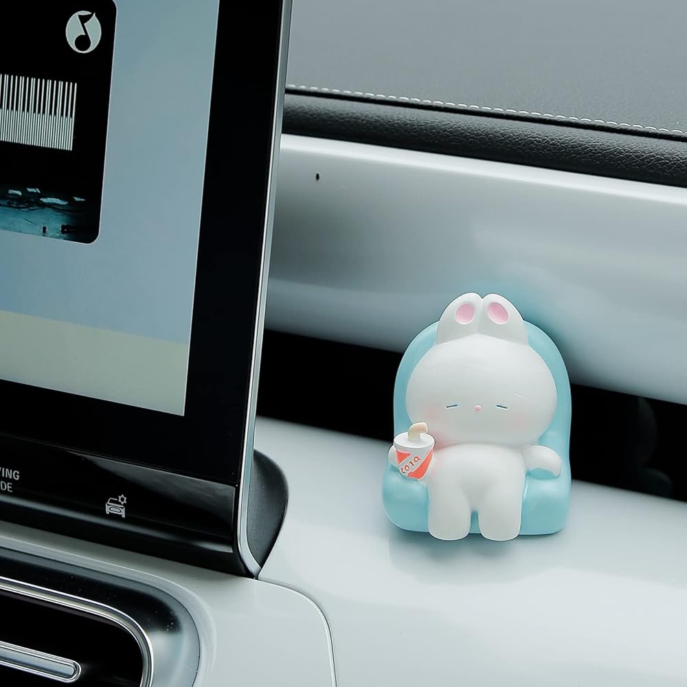 YGMONER Car Dashboard Figurine Cute Rabbit Sleeping on Sofa Resin Bunny Knick-knacks Desk Decor Room Decorative Bookshelf Easter Decorations