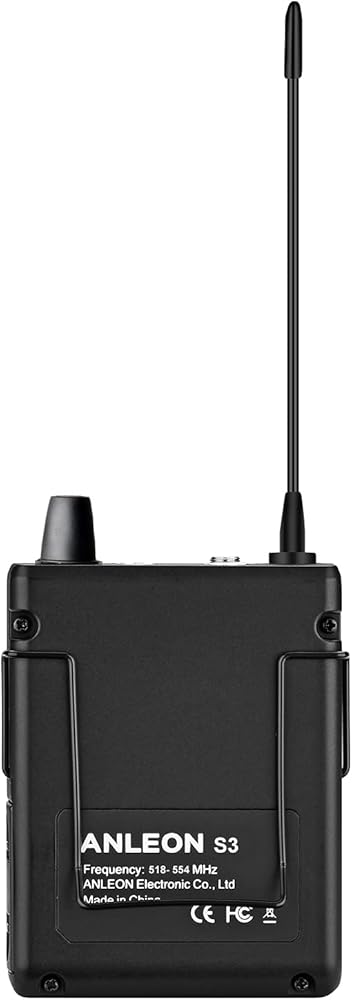 S3 Wireless In-Ear Monitor System ANLEON's advanced S3 IEM system offers a full range of professional in-ear monitoring features, The stereo monitor system is equipped with S3's versatile Personal Mix Control, which gives allows volume and mix control of two independent signals on stage, via controls on the S3 stereo body-pack receiver. While up to 8 complete S3 systems may be used simultaneously, any number of S3 stereo receivers can operate on the same frequency with a single S3 stereo transmitter. The S3 Stereo Transmitter is equipped with two XLR/? combo input connectors into which users can connect line-level inputs (from a mixing console, for example). The S3 Transmitter also offers a headphone output that allows you to monitor transmitter input signals directly. Operating Frequencies Band : 518.000 to 554.000 MHz, (Not all frequency bands available in all areas. Modulation Mode FM stereo Maximum Deviation ±40 kHz Frequency Response 60 Hz to 13 kHz (+/- 3 dB) Dynamic Range 90 dB (typical), A-weighted Total Harmonic Distortion
