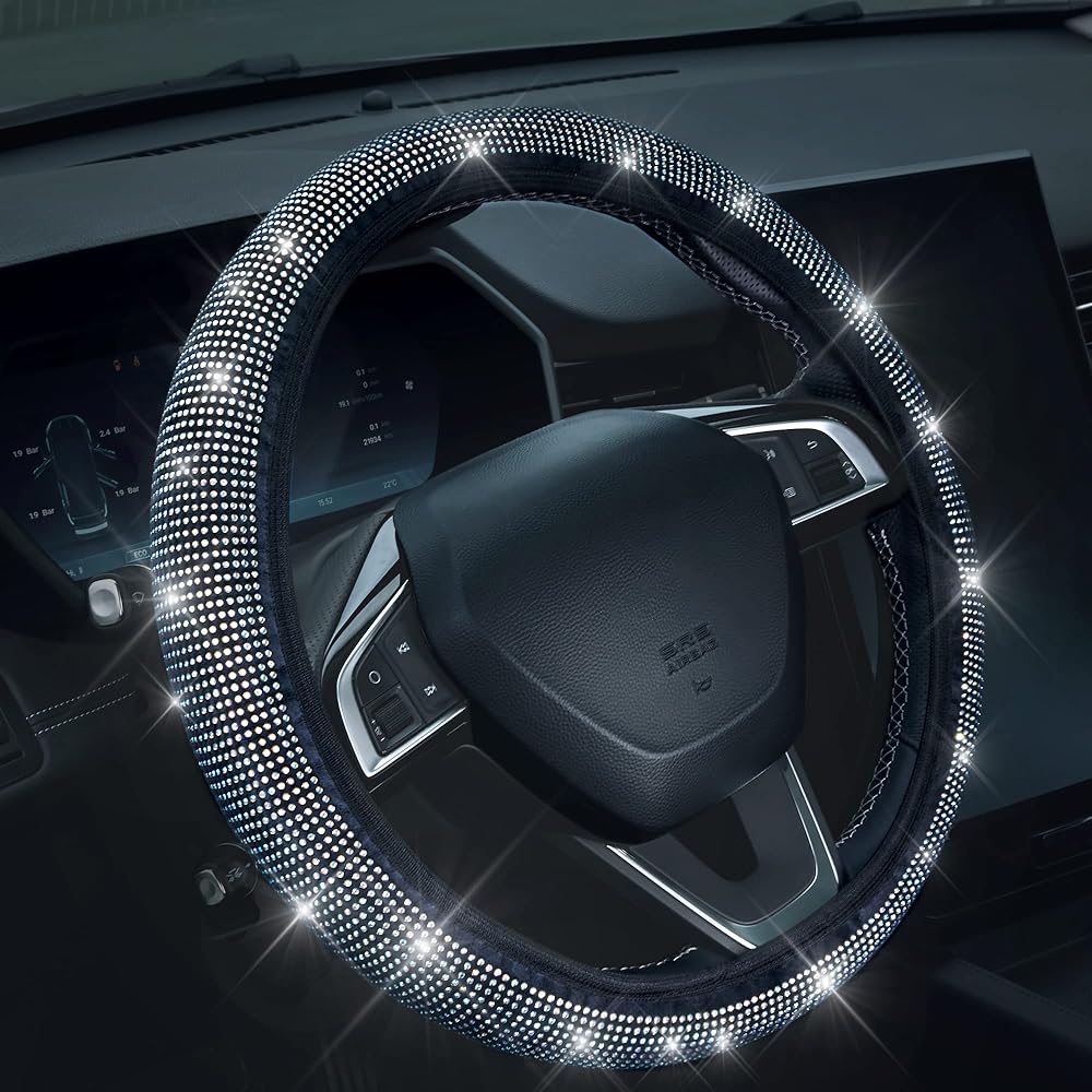 Bling car accessories: Fashion Colorful Design of the Bling Rhinestones Steering Wheel Cover, adds luxury into your car interior Bling under the light: sparkling through windshield and shining your car. Perfect Gift for Women and girls.