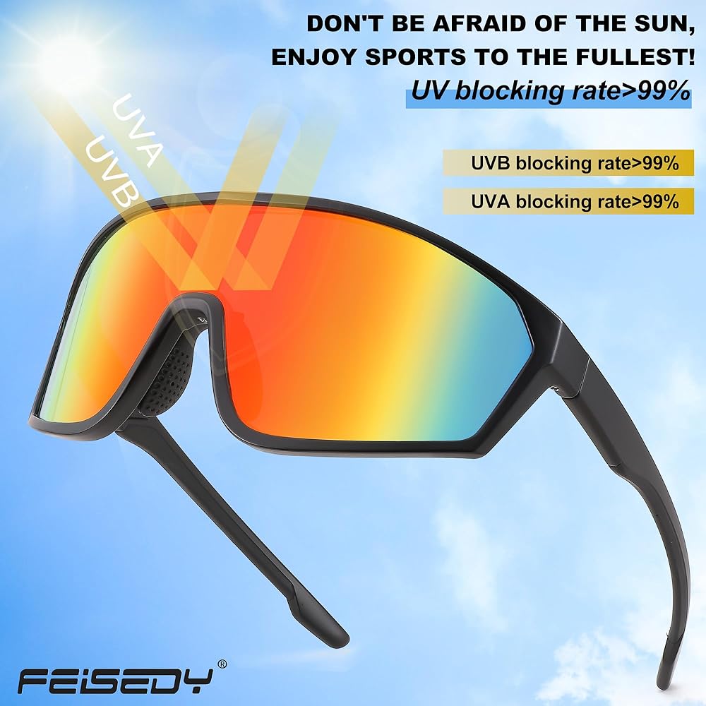 【UV400 Protection Lens】FEISEDY's cycling glasses have a UV400 protective film that blocks 99% of harmful UVA and UVB rays, Ensure clear vision and more natural vision sight. Block glare reflected off of roads, water, snow....Restore true color and Protect your eyes more comfy.