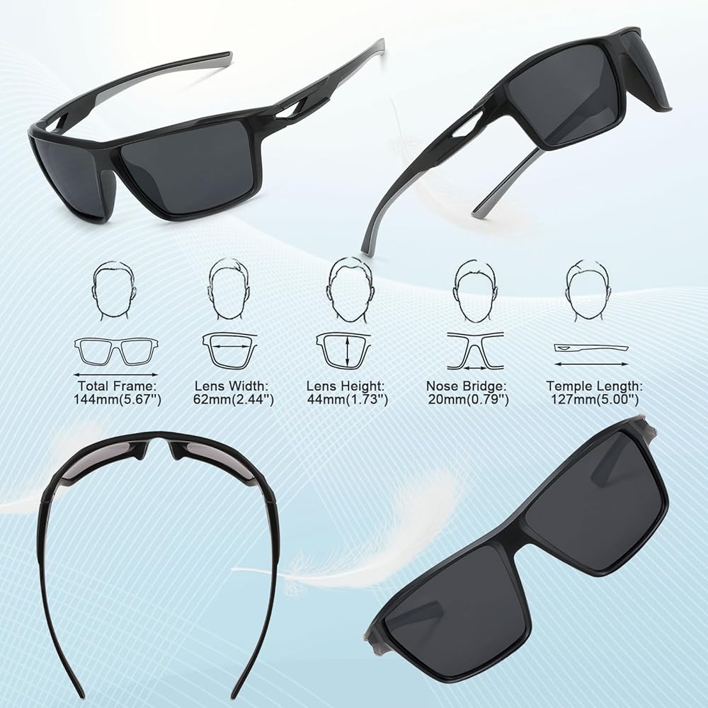 【Practical Design】The entire glasses are very lightweight, making them more comfortable for outdoor activities. TAC material, more durable. The tail end of the mirror legs adopts secondary injection molding, which is more anti slip.