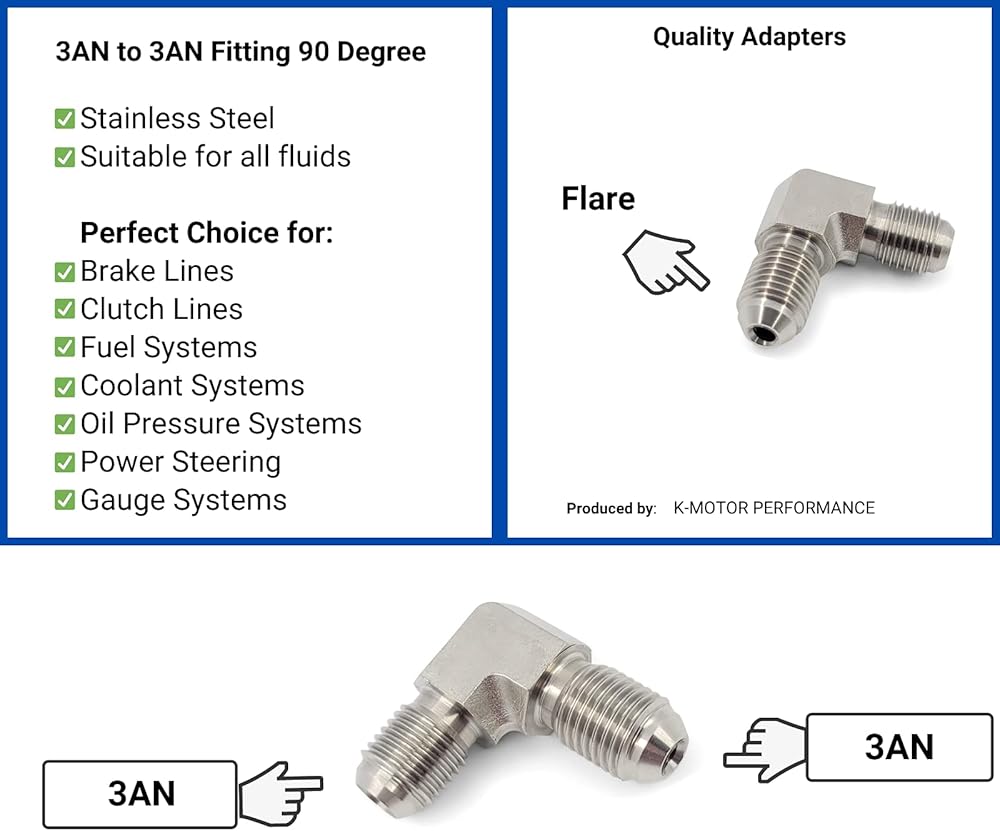 3AN to 3AN Male Fitting Adapter - 90 Degree (Steel)