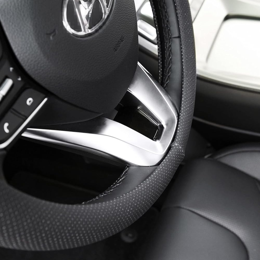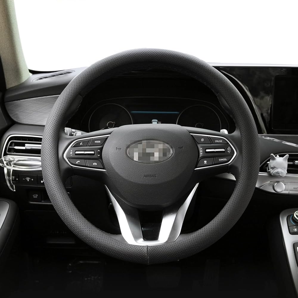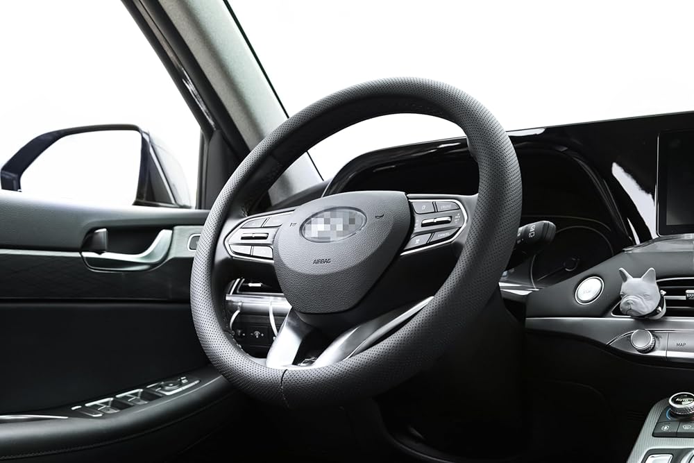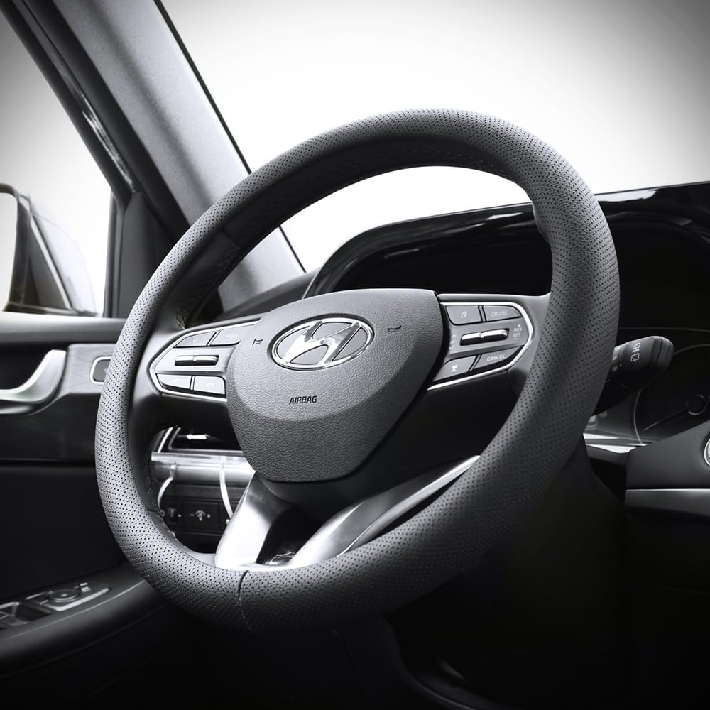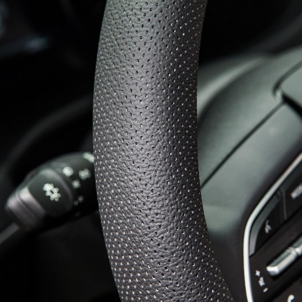 COMFORTABLE EASY GRIP: This car steering wheel cover is designed with a simple style that adds soft texture to your wheel. Tiny, punched holes on smooth fabric give your hands a comfortable surface to grip as you drive.