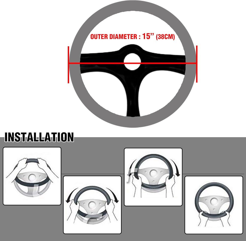 STURDY VEGAN MATERIALS: High quality and sturdy, our vegan leather feels smooth and luxurious to the touch. Upgrade your vehicle's steering wheel with this easy-to-install cover. Simply stretch this cover around your car wheel.
