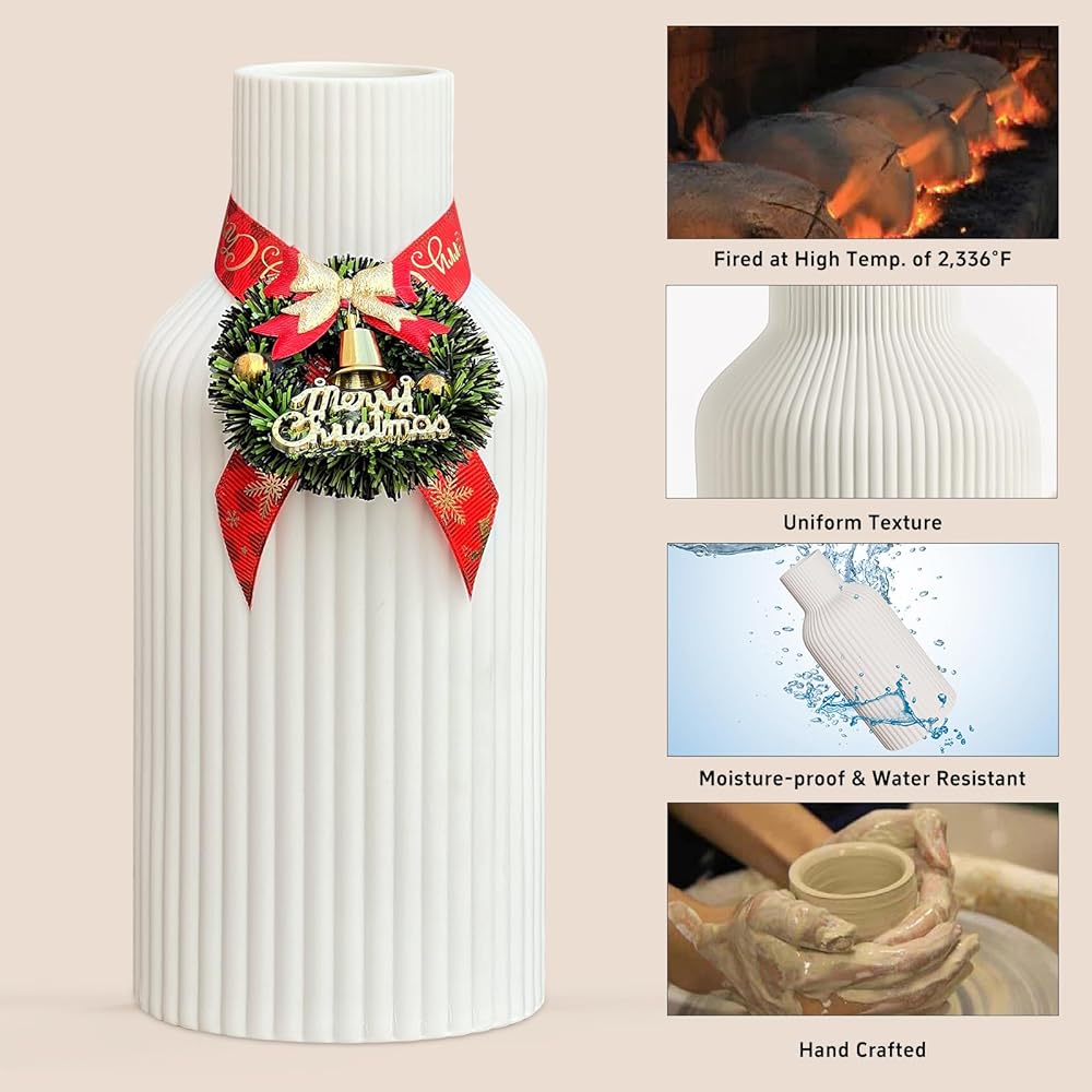 Versatile Flower Vase: The white ceramic vase is not only suitable for greenery and dry or faux florals, but also can hold water for fresh flowers. You can either use alone, or with other white vase or black vase, to create beautiful dining table centerpiece in your home.