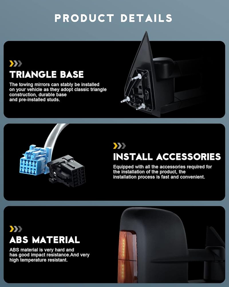 🚛 Manufactured Standards - Manufactured according to Factory OE Standards. Dimensions: side mirror length is 16.5” (closed) and 19.25” (extended); side mirror size is 11.81”×7.09”