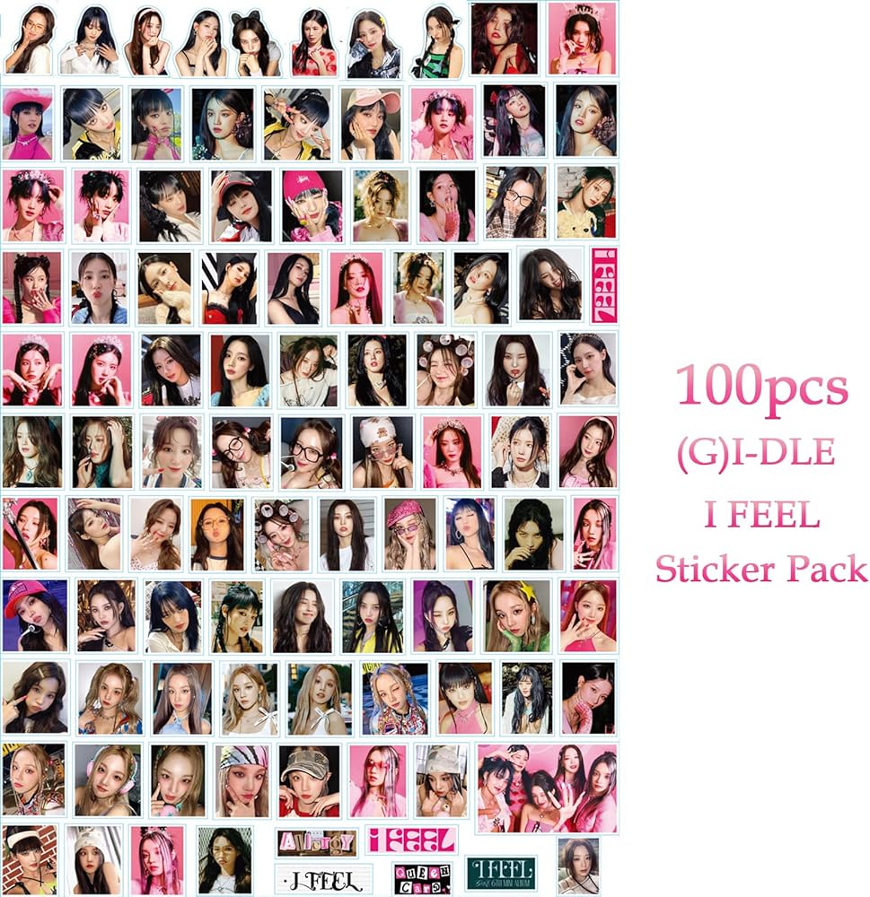 100PCS (G) I-DLE I FEEL Sticker Pack .Not Repeated Stickers. High quality PVC material, sun protection and waterproof functions.