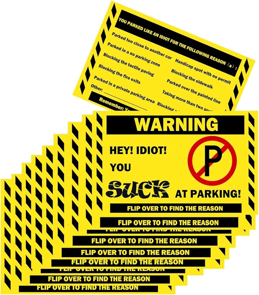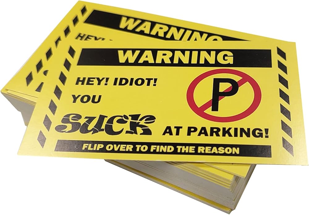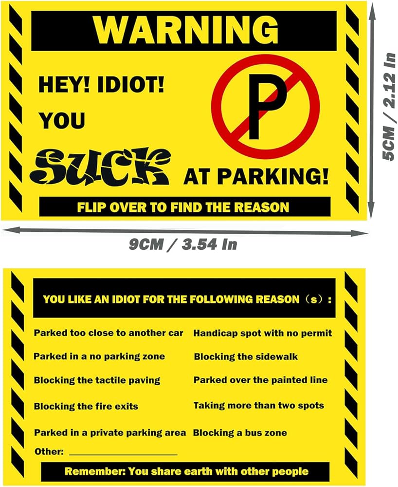 🚫[PACK OF 100]: Comes with 100 pieces of "You parked like an idiot" cards. 3.5 x 2.0 Inches size. Same size as business card. Easy carried in wallet.