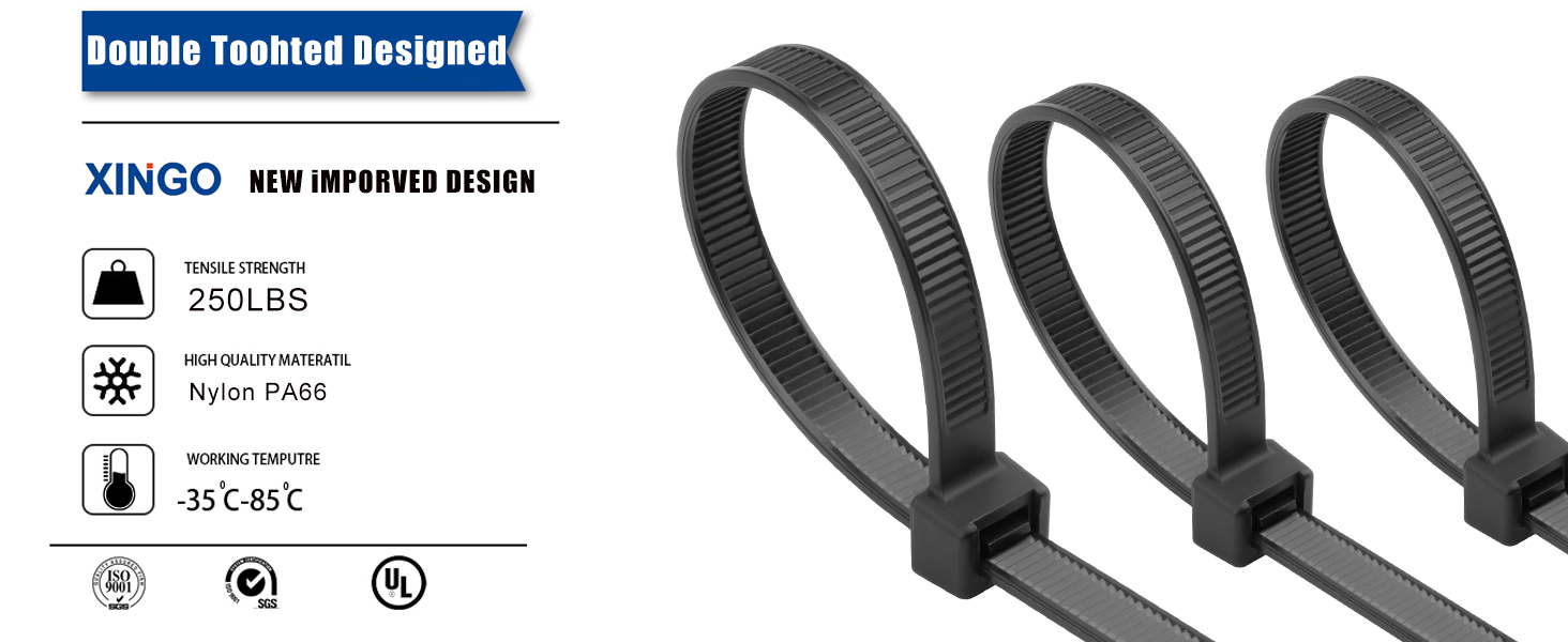 ★【Heavy Duty】The strength tensile of a zip tie depends on its width.XINGO Zip Ties with 250 lbs are 0.36 inches / 9mm Wide.which makes the cable tie stronger than the same size cable tie on the market and tensile strength could handles most purpose of binding in life.