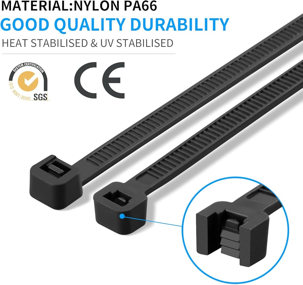 ★【Wide Application】The wide design makes the large zip ties stronger, whicah makes it can be used in organizing cables, Securing a bike, Gardening, Replacing broken straps, Locking suitcase as well as most outdoor commercial construction work and Industrial bundling use.