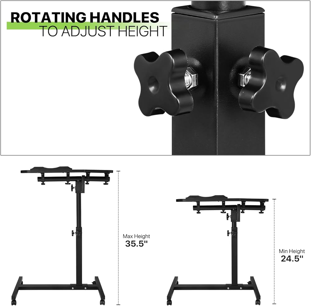 Flexible Movement: The mobile rolling table is equipped with four wheels, including two locking wheels. You can move this mobile standing desk where you need it, just screw on the wheels to create a portable workspace.