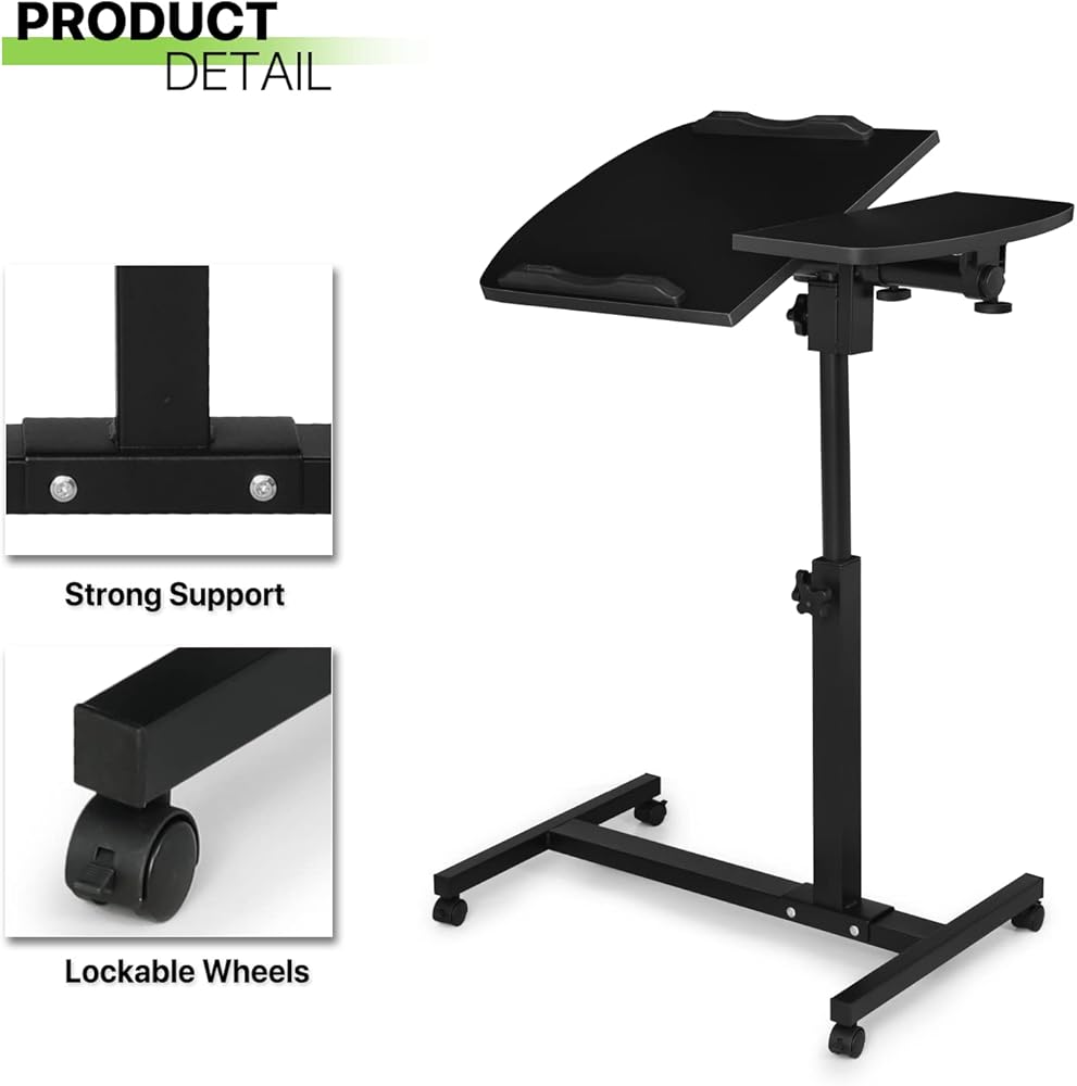 High Performance and High-Quality Table: The mobile standing table legs are made of high-quality material and can support up to 55 lbs. the desktop provides enough office space. the waterproof MDF material tabletop is durable and easy to clean.