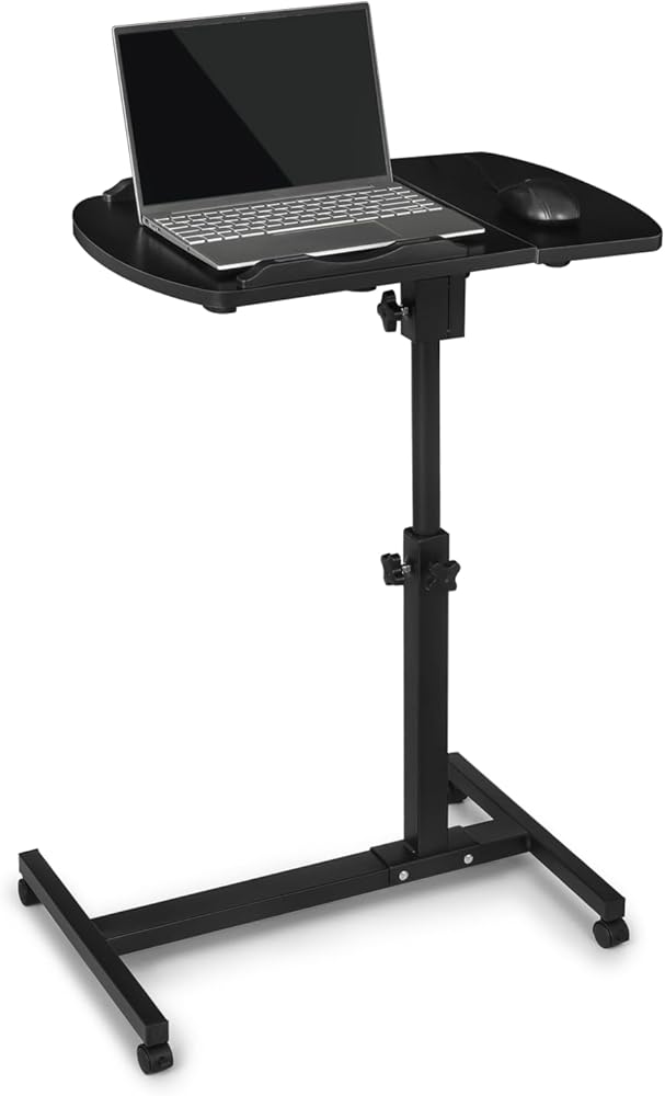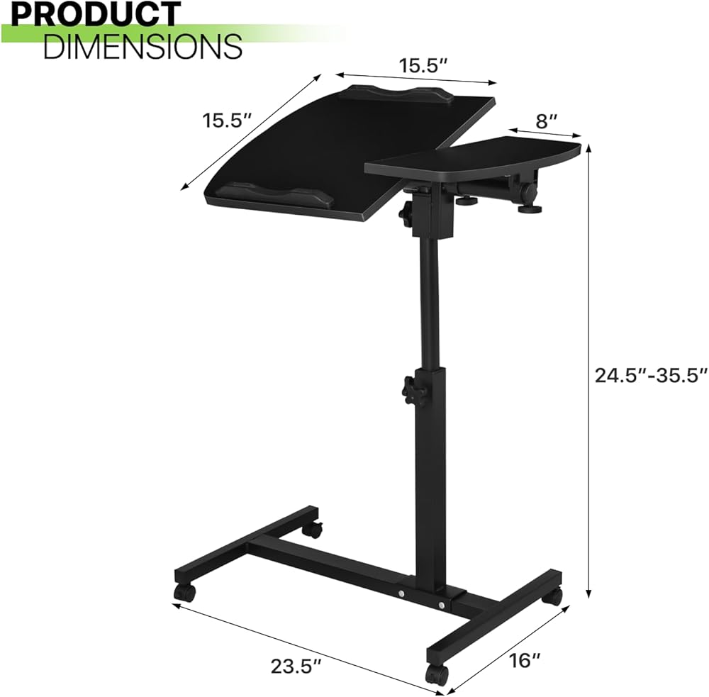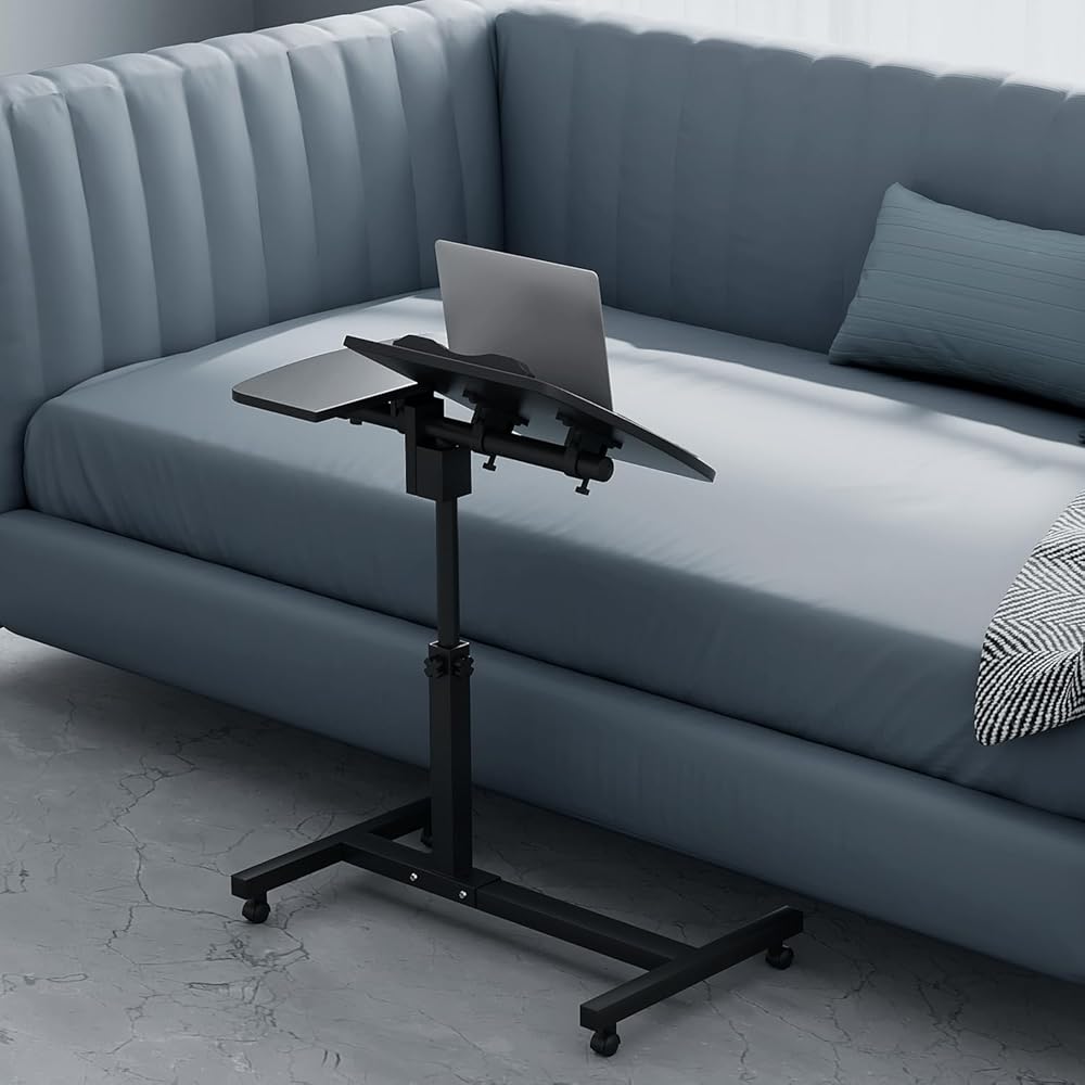 Magshion Tilting Overbed Bedside Table with Wheels, Rolling Laptop Desk with Mouse Table & Height Adjustment from 24" to 36", Sit to Stand Up, Mobile Standing Desk for Hospital Home Office, Black