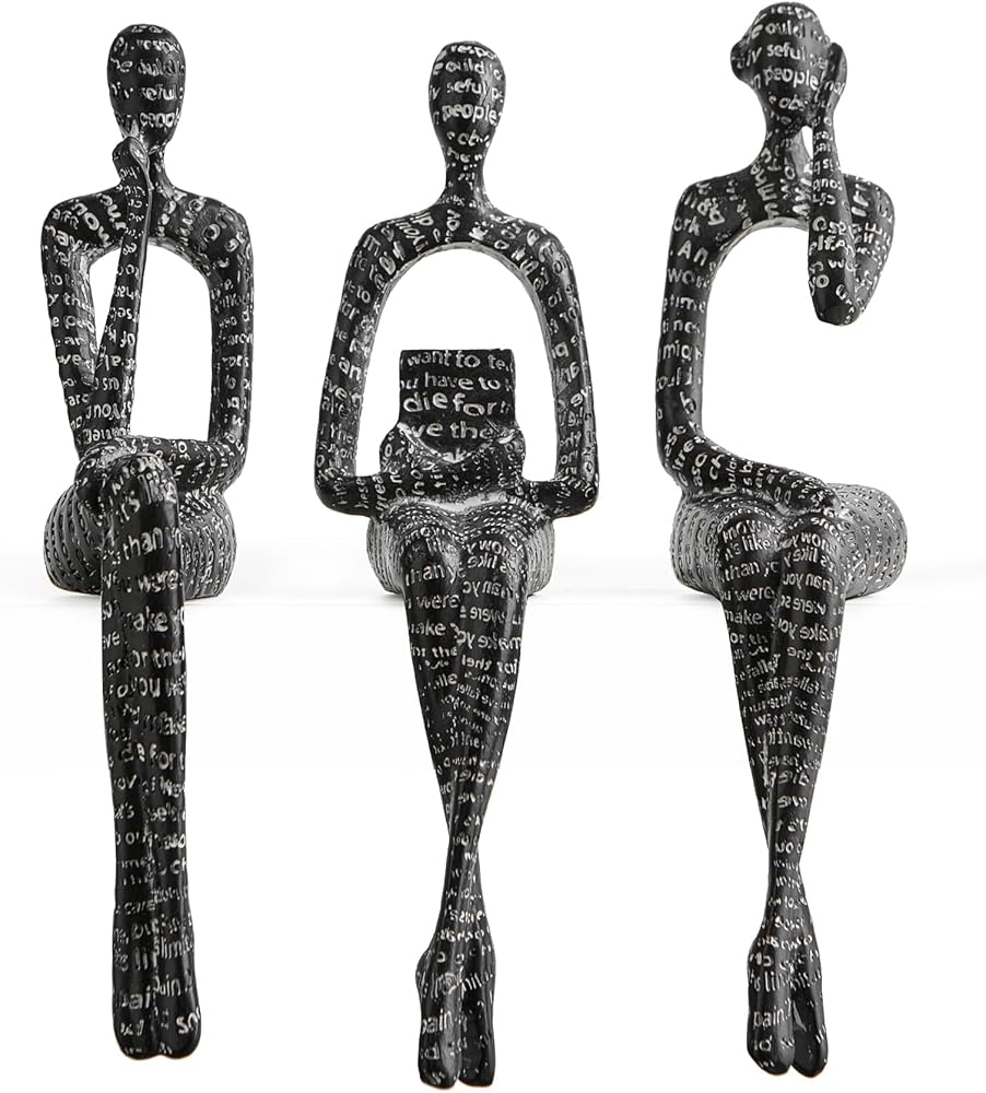FJS Thinker Sculpture Statue Black Home Decor, Modern Abstract Art Figurines for Bookshelf Desk Office, Decorations for Living Room Accent, Gift for Book Lovers