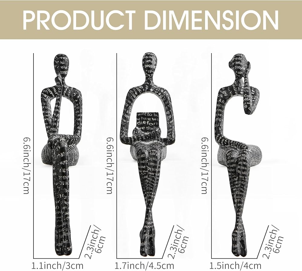 【Dimensions】 The gold thinker statue size is Left: width -3.14 inches, height -4.7 inches, Right: Width-2.36 inches, height-4.7 inches, Focus: width-2.36 inches, height-4.7 inches. The size is just right so that it can be perfectly integrated with most home decorations. Just place it where you like, such as a bookshelf, Mantelpiece, TV cabinet, table, desk, coffee bar, entertainment center, etc.