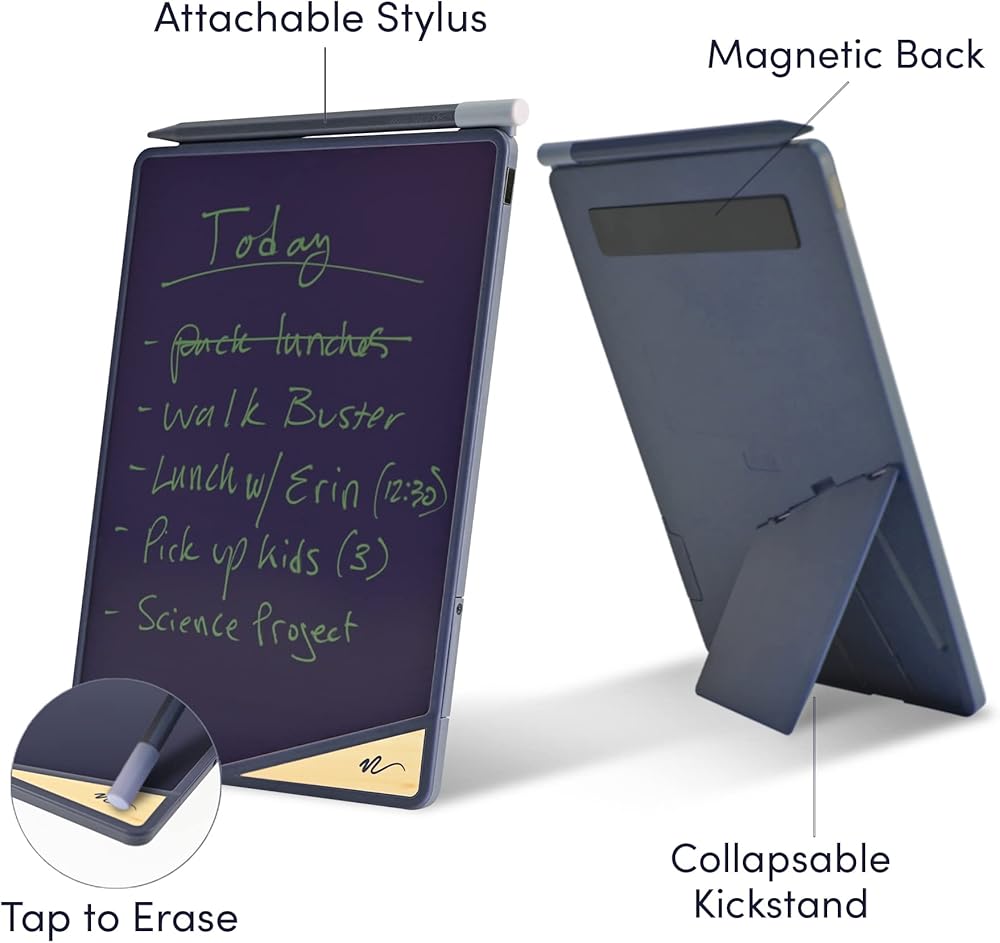 Perfect for Home or Office: It's an ideal size for hanging on your refrigerator using the included magnets, but can also live on its own, standing upright on any tabletop with the built-in kickstand that can be displayed in portrait or landscape. The built-in magnets on the sides of the board and pencil slot allow the VersaPencil to attach to almost any side of the writing tablet, so it's not easily lost.