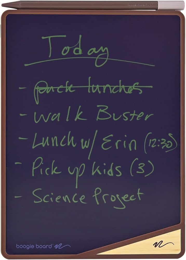 Authentic: The reusable LCD memo board uses Boogie Board's patented technology made of scientifically engineered materials, which offers a natural writing experience and a bright, durable screen that lasts for years.