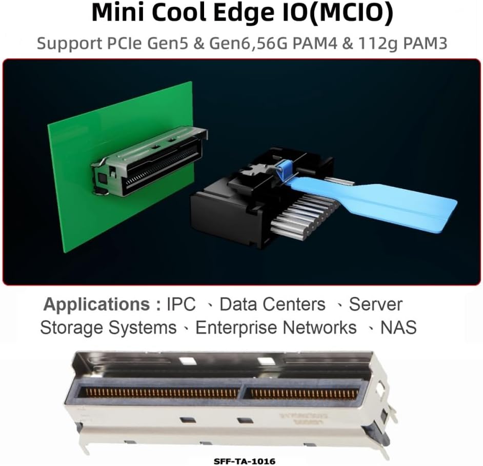 What is mini cool edge Io (MCIO): MCIO cables are designed for data center, networking and telecommunications markets that use SAS, PCIe, Ethernet and othersignal protocols.