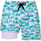 【2 in 1 Mens Swim Trunks with Boxer Brief Liner 】The men swim trunks have a Built-in compression lining protects your skin from scratch and prevents from sticking to your skin when the shorts are soaked. while provides better breathability and elasticity
