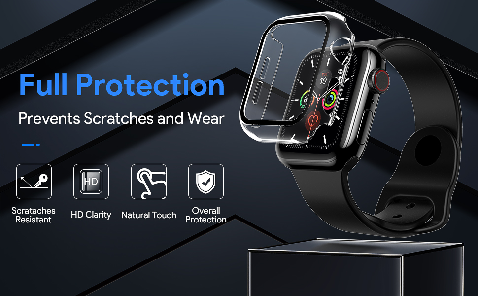【Special Material】 Made of PC material and built-in tempered glass, this case covers the full front and curved edges of the watch, offering full protection for your apple watch against scratches, drops, and bumps.