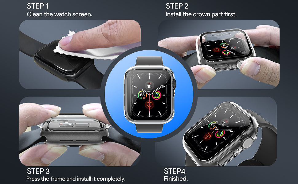 【Kindly Remind】 Using this product at gym or sports activities may cause the moisture (from perspiration) to be trapped between this product and the watch screen. This is due to the nature of the product as it does not stick to the screen. When there are fog between the case and the screen, please use a cloth to absorb moisture from the watch and screen protector before reuse it.