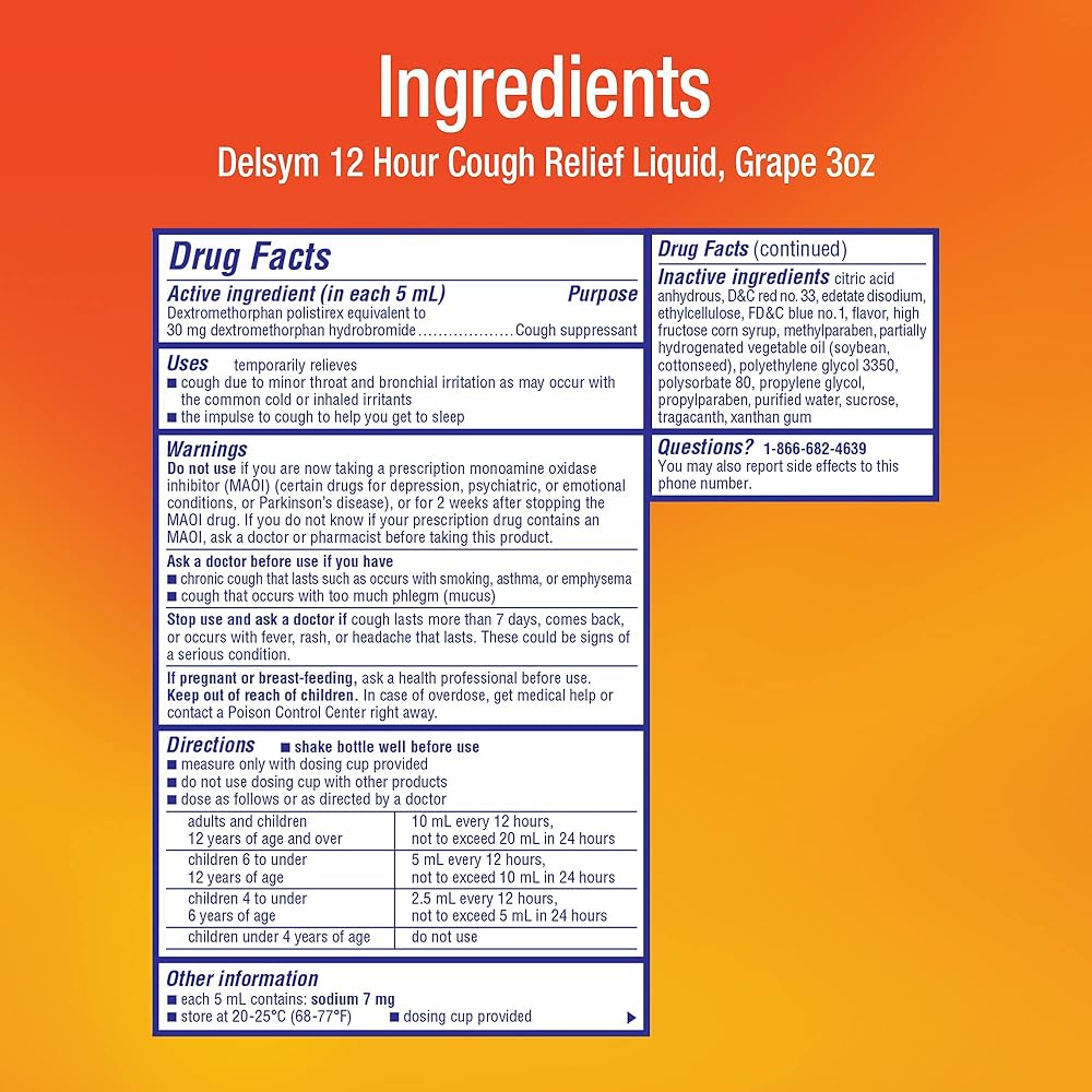 Delsym Adult 12 Hour Grape Cough Syrup, 3 oz