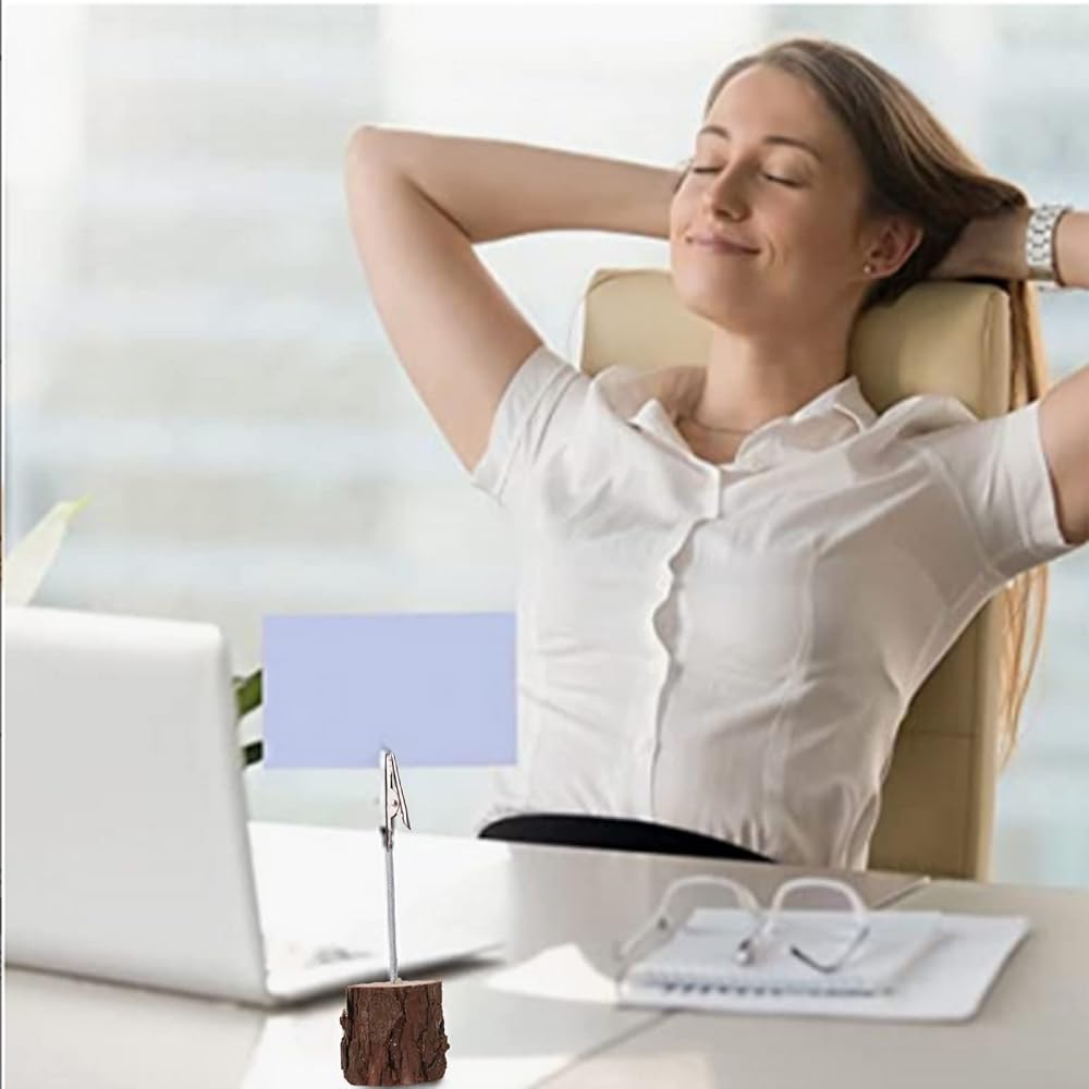 4 Pcs Place Card Holder Wooden Place Card Holders with Clip Wood Base Photo Clips Holder Memo Notes Clip Stand Table Number Holder Place Card Holder for Wedding Party Desktop Name Sign