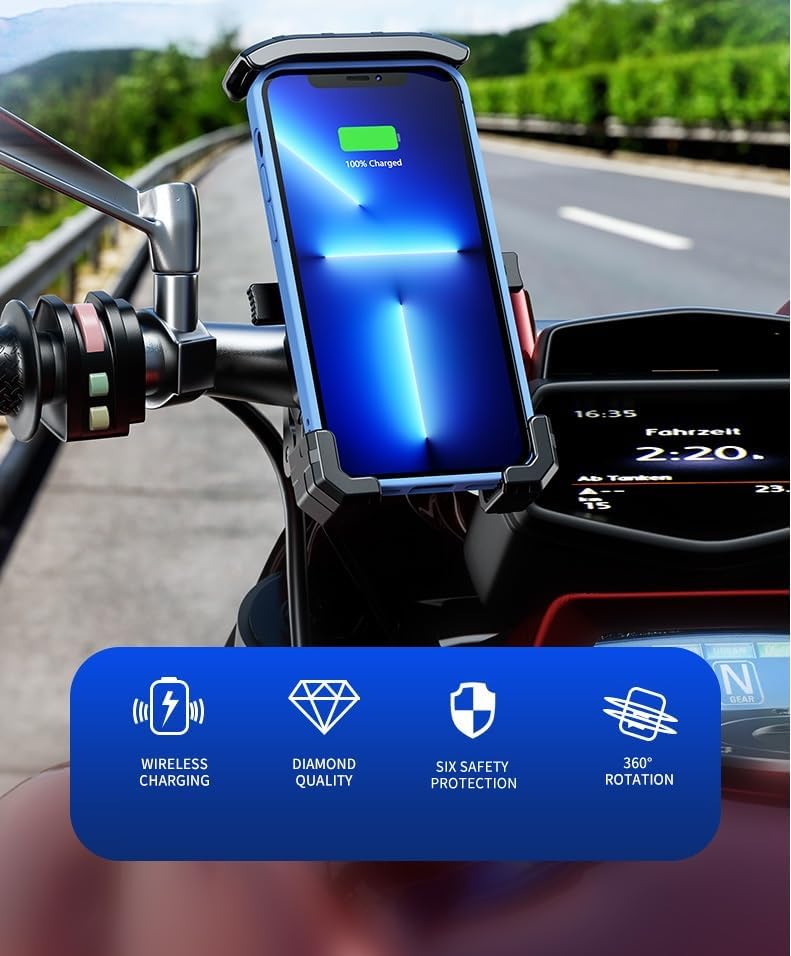 【One-handed Operation 】The bike - motorcycle phone mount adopts one-touch automatically lock and quick release design. Put in or take out your phone with just one hand in one second, very convenient. 360 degree free rotation design, can be easy to adjust the mobile phone to horizontal or vertical screen. Enjoy a free and easy riding.