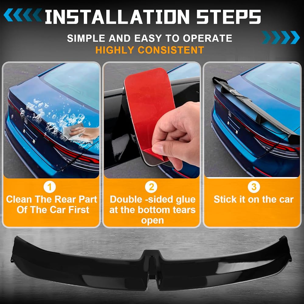 【Easy installation】: The rear spoiler is easy to install without any special tools. It has self adhesive in the back. No drilling/cutting is required.