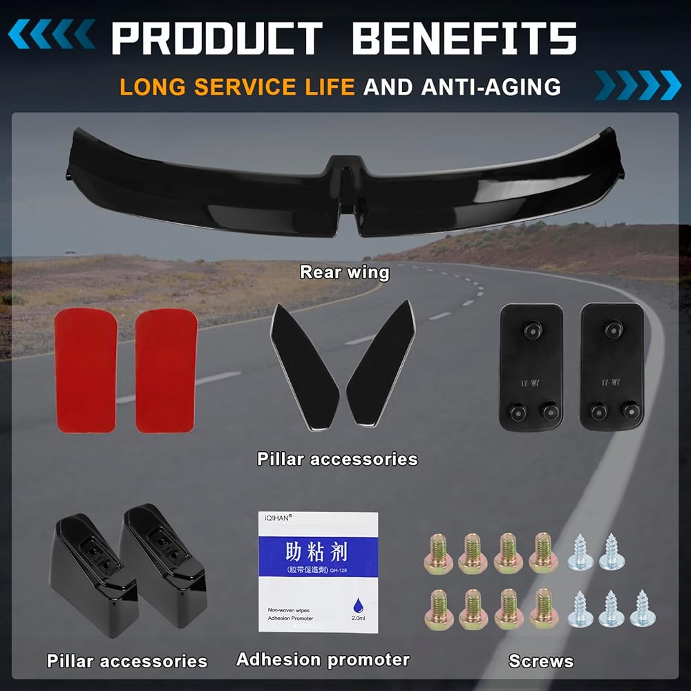 【Package】 Package includes 1 x Rear Trunk Spoiler Wing,2 Years Warranty