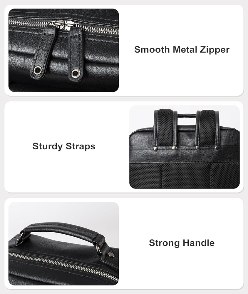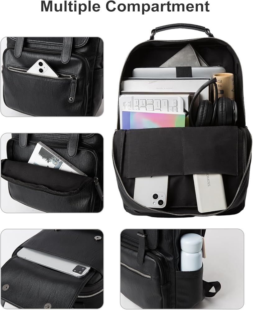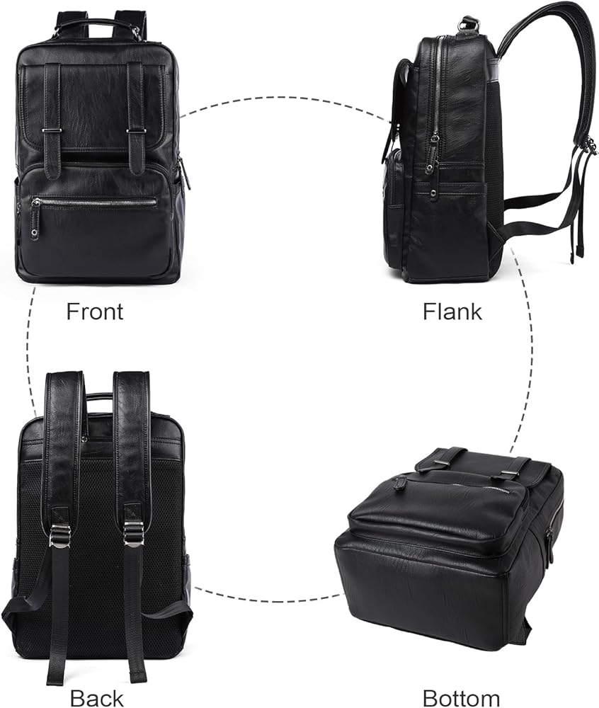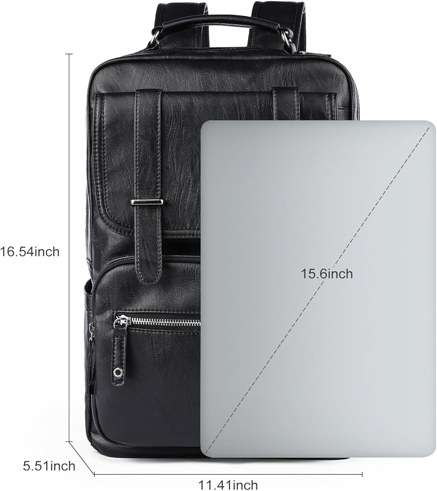 Introducing the MOYYI Black Leather Backpack for Men, the perfect blend of style, functionality, and durability. Designed with dimensions of 12.6*5.9*16.9 inches, this backpack is spacious enough to fit a 15.6inch laptop, making it ideal for work, commute, or casual use. Crafted from high-quality PU leather, this backpack is waterproof, ensuring your belongings stay safe and dry in any weather. Whether you're a commuter, a professional, or a traveler, this versatile backpack is suitable for all occasions. The sleek black design adds a touch of sophistication, making it a fashionable accessory for men of all adult ages. This backpack features multiple compartments and pockets, allowing you to organize your essentials with ease. The adjustable shoulder straps ensure a comfortable fit, while the premium materials guarantee long-lasting use. Upgrade your style with the MOYYI Black Leather Backpack for Men - the perfect combination of practicality and fashion. Ideal for those who appreciate quality and understated elegance in their accessories. Elevate your everyday look with this stylish and functional backpack.