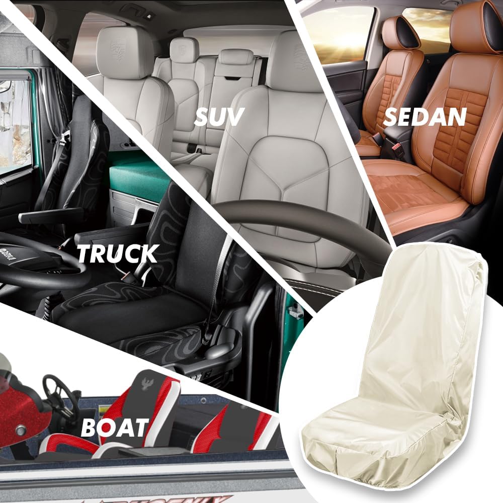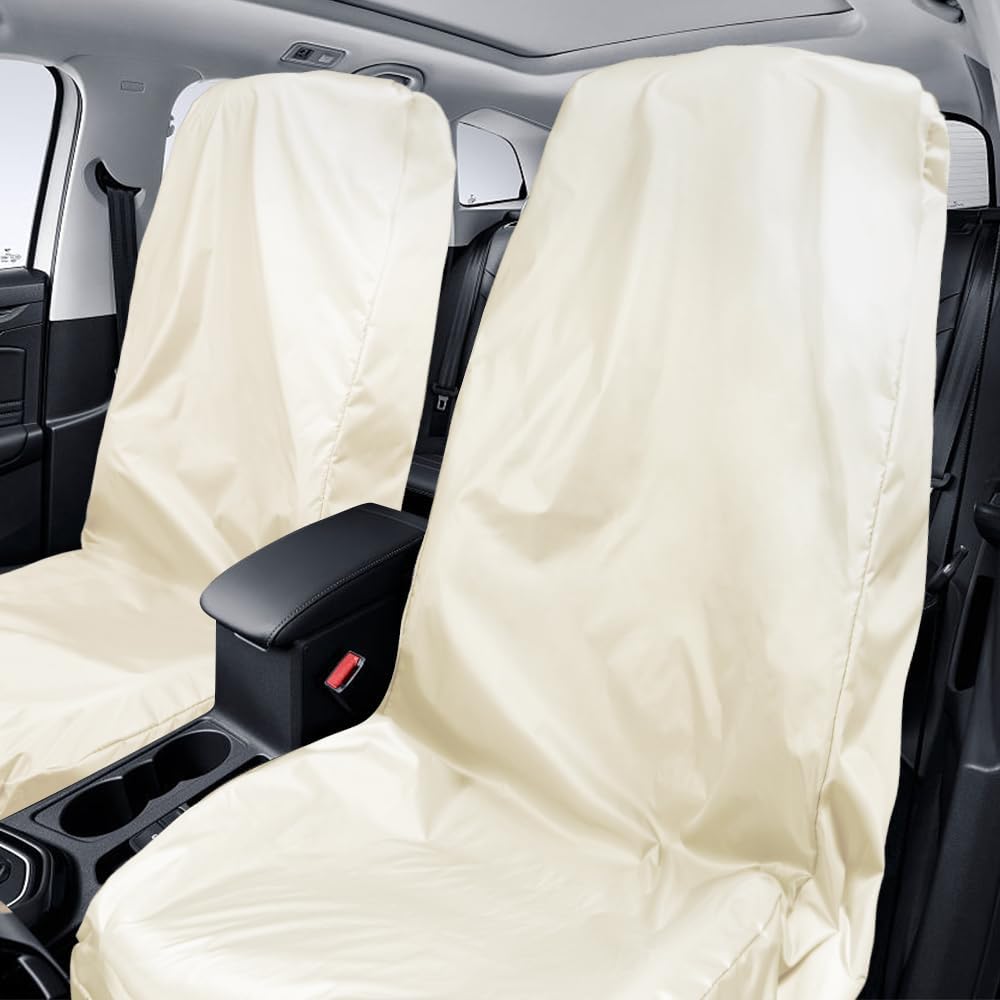 Waterproof Car Seat Cover for Front Seat, Universal Seat Covers After Gym, Post Workout, Polyester Machine Washable Car Seat Protector Suitable for Auto, Truck, Van, SUV, Boat, Beige