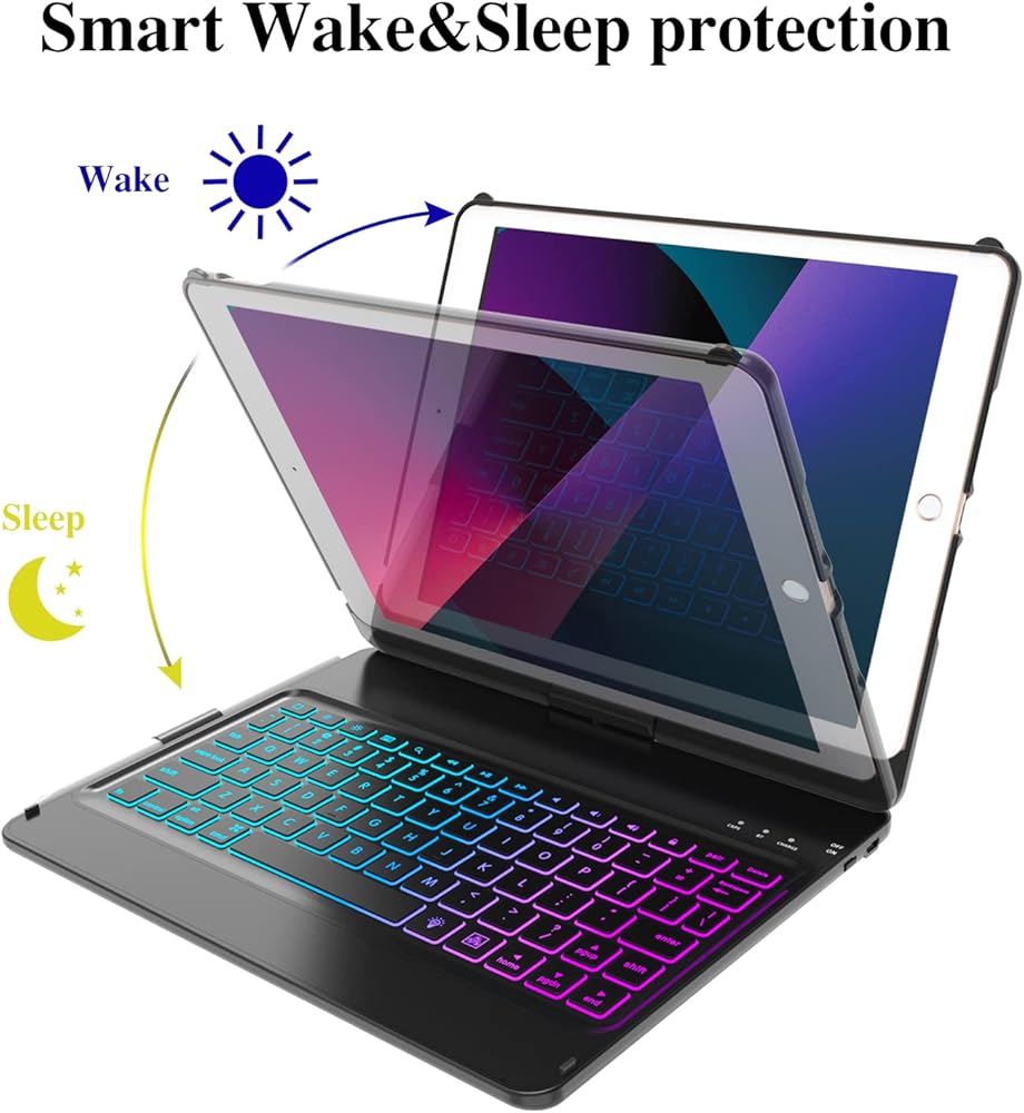 MMK iPad Keyboard Case - 10.2 inch, 360 Rotatable Wireless Detachable Bluetooth Keyboard Cover for iPad 9th Gen 2021, 8th Gen 2020, 7th Gen 2019 - 7 Color Backlit