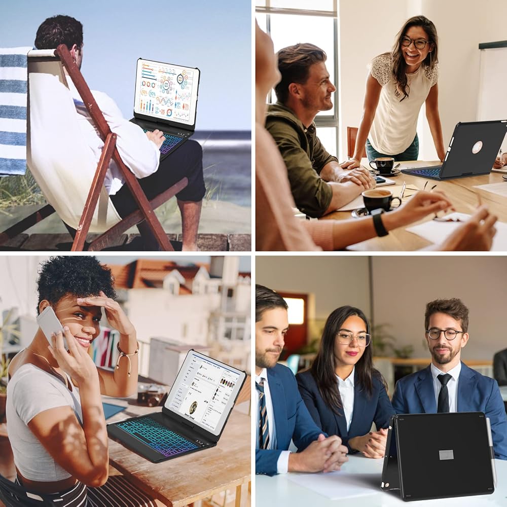 【360 Degree Rotate & 180 Degree Flip】2021 new release iPad 9th generation keyboard case shaft bracket design allows the iPad to be rotated 360 degree and tilted up to 135 degree, meet all your viewing angle needs when you are typing, watching video or playing games, turn your iPad into small Macbook in seconds. So convenient to your life.