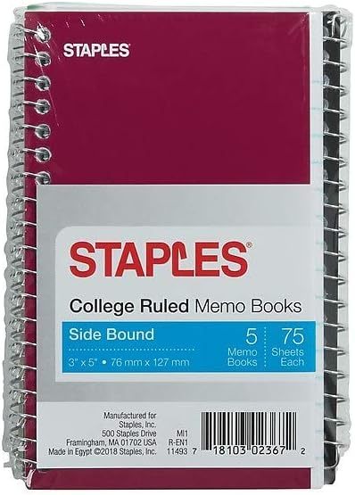 STAPLES Memo Book, 3" x 5", Side‑Bound, Ruled