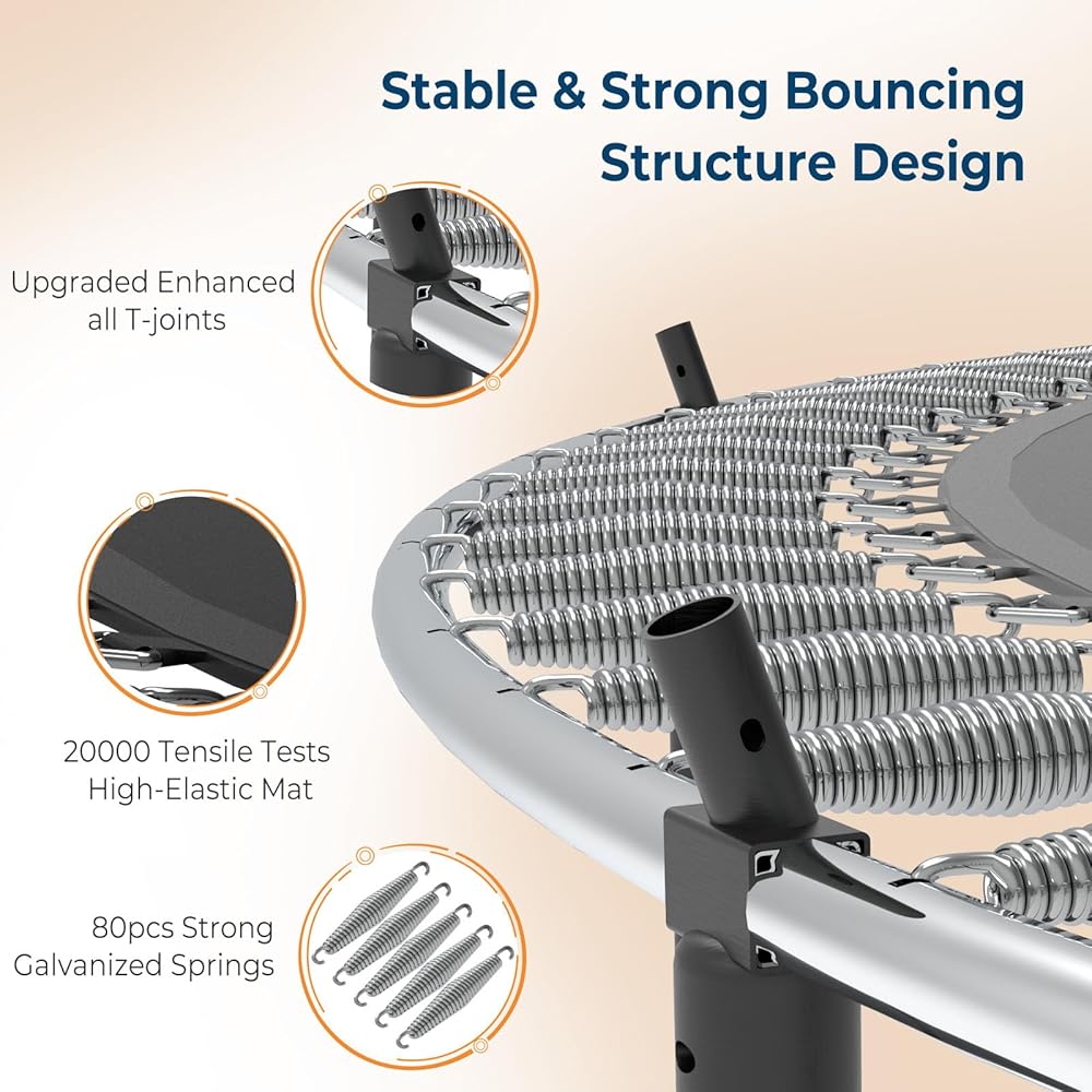 【Painless Exercise】This premium trampoline for kids and adults provides a unique, high-quality design, allowing you and your family to enjoy fun-filled, energetic workouts without the fatigue associated with other sports.