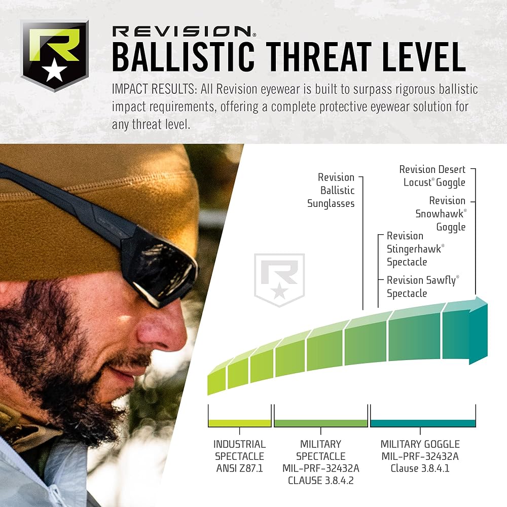 Revision's Shadow Strike Tactical Ballistic Sunglasses have a sharp, geometrical wraparound design that provides unobstructed field-of-vision and ballistic protection for fast-paced tactical, special ops, and military operations. Angular frames and a tighter curvature give this line a distinctive look while maximizing protection-fitting squarely, securely, and comfortably at all times.