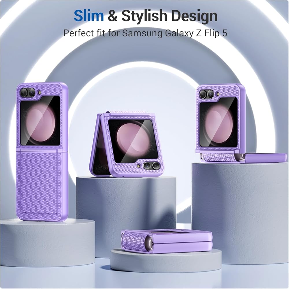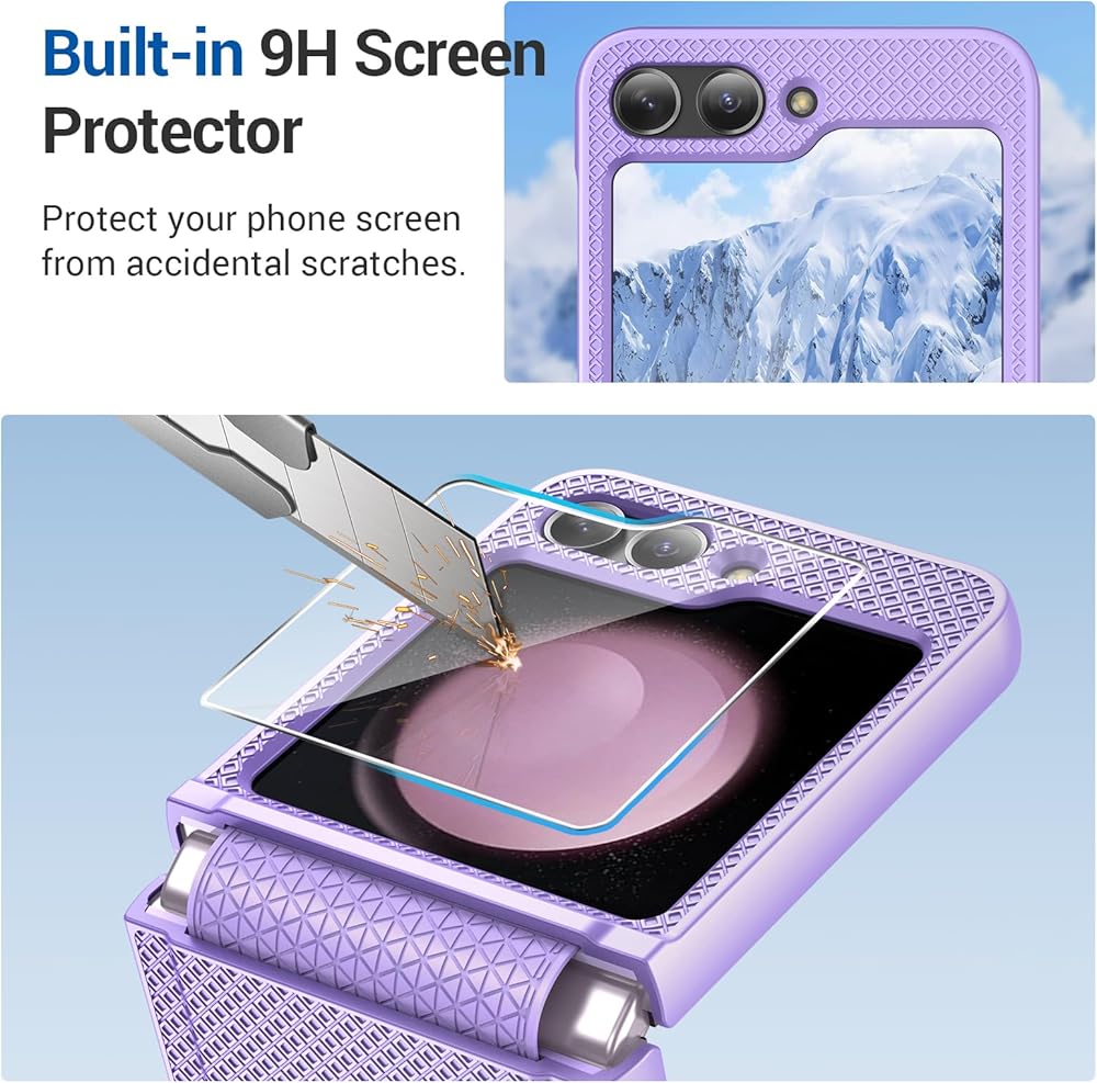 【Built-in Screen Protector】This Galaxy Z flip 5 case with an built-in high-transparency screen protector protects your phone from scratches, drops, and bumps, and you don't need another screen protector.