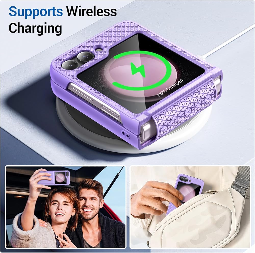 【Wireless Charging】This Z Flip 5 slim case is designed to be compatible with most wireless charging devices, and you no longer need to remove the case before wireless charging.