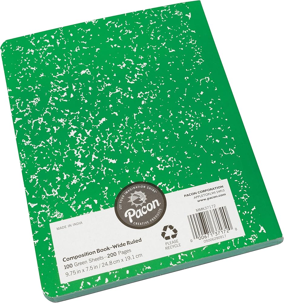 The Pacon Junior Composition Book is a 5" x 7-1/2" composition book that is great for students to use for daily grammar and vocabulary work, practicing math word problems or as a class journal. The smaller size helps students fill the entire page for each lesson - no more wasted or empty space on full size pages! Comes with a hardcover for added durability in a Black marble design. Recyclable.