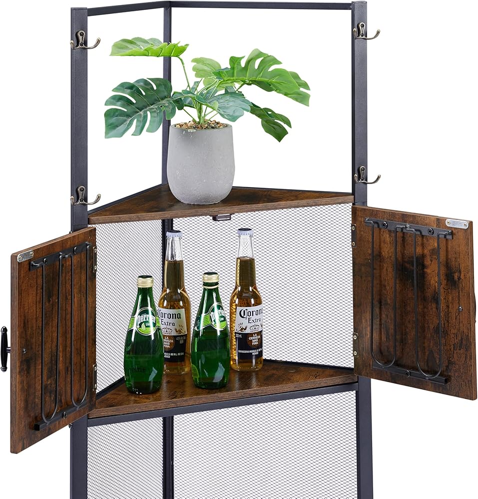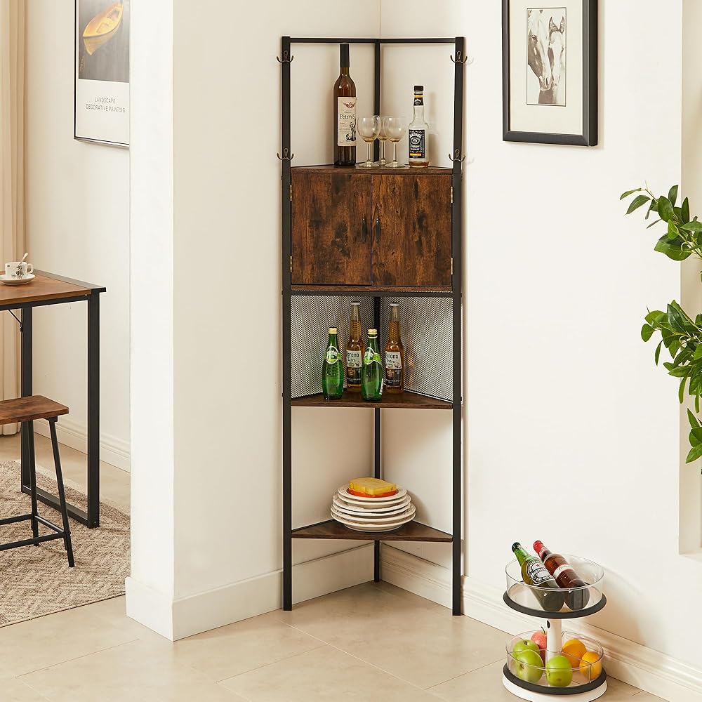 VECELO 3-Tier Corner Cabinet with Doors for Small Space