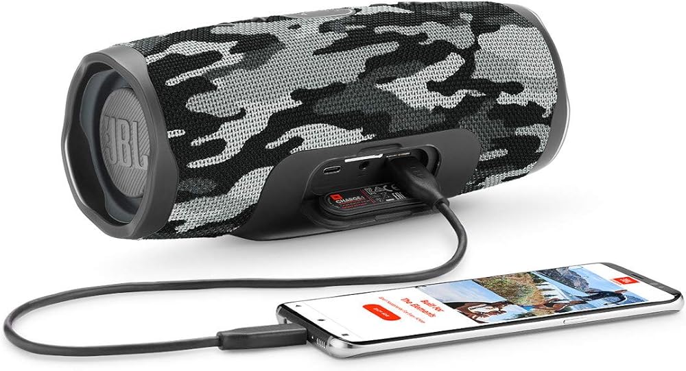 PRODUCT OVERVIEWIntroducing the JBL Charge 4 portable Bluetooth speaker with full-spectrum, powerful sound, and a built-in power bank for charging your devices. A high-capacity 7500mAh rechargeable Li-ion battery provides up to 20 hours of playtime and the speaker carries a convenient USB charge out to quickly charge your devices so you will never run out of power again. And with a rugged design, IPX7 waterproof rated exterior, together with JBL Connect+ it will elevate your listening to the next levelKEY FEATURESWirelessly connect up to 2 smartphones or tablets to the speaker and take turns enjoying the powerful sound.Built-in rechargeable li-ion 7800mAh battery supports up to 20 hours of playtime and charges your device via USB port.Take charge 4 to the beach or the pool without worrying about spills or even submersion in water.Amplify your listening experience to epic levels and rock the party perfectly by wirelessly connecting more than 100 JBL connect+ enabled speakers.